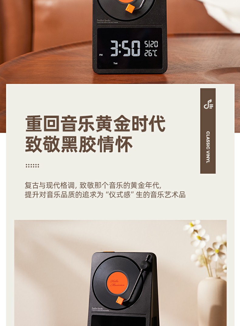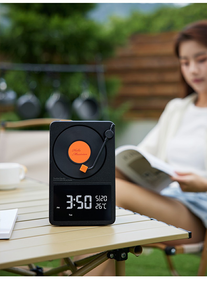 Muguang 블루투스 스피커 데스크탑 복고풍 달력 시계 스피커 서브 우퍼 필름 회전 생일 선물 LK11스토어 가기
