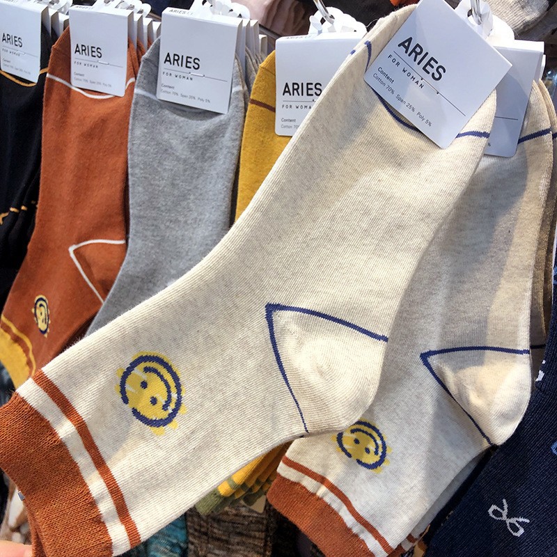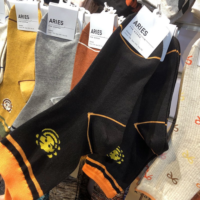 [재고] 한국 동대문 양말 ARIES 낙서 귀여운 소녀 양말 핀스트라이프 면 양말스토어 가기