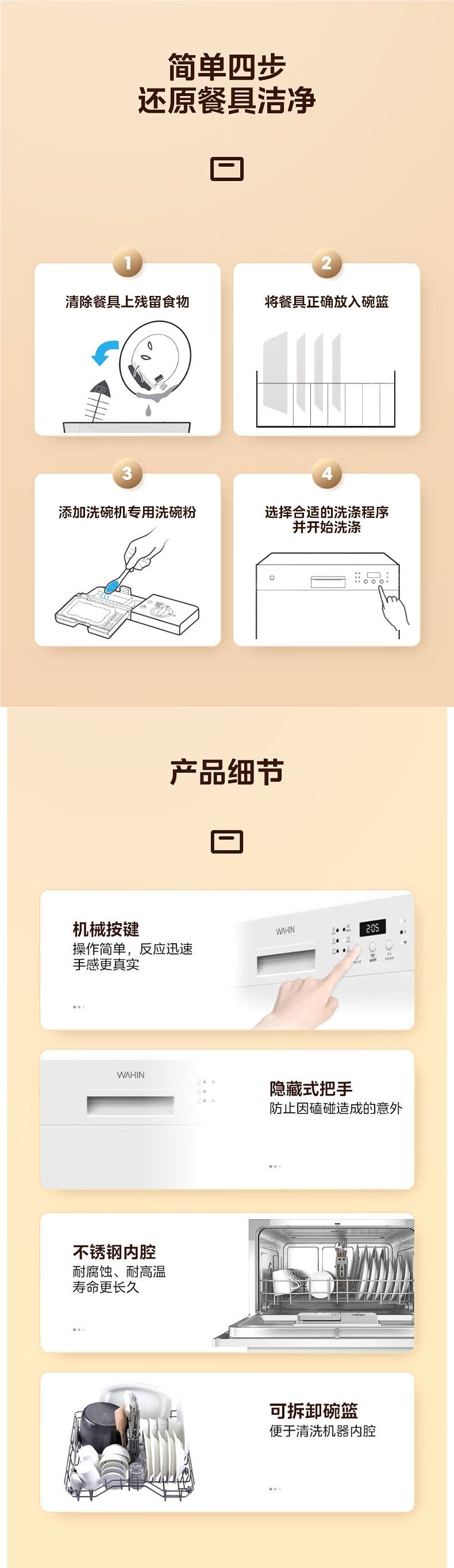 Hualing 6 세트 3602 플러스 식기 세척기 데스크탑 설치 무료 임베디드 이중 목적 가정용 별 2 개스토어 가기
