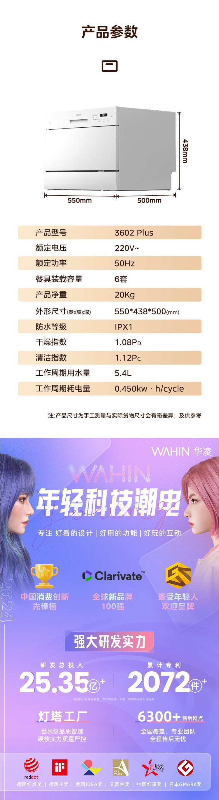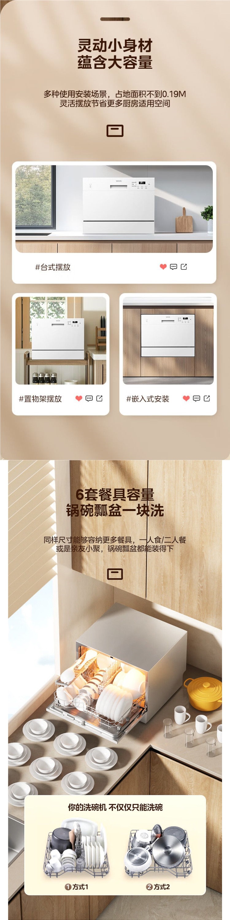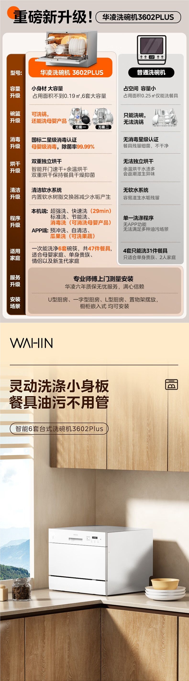 Hualing 6 세트 3602 플러스 식기 세척기 데스크탑 설치 무료 임베디드 이중 목적 가정용 별 2 개