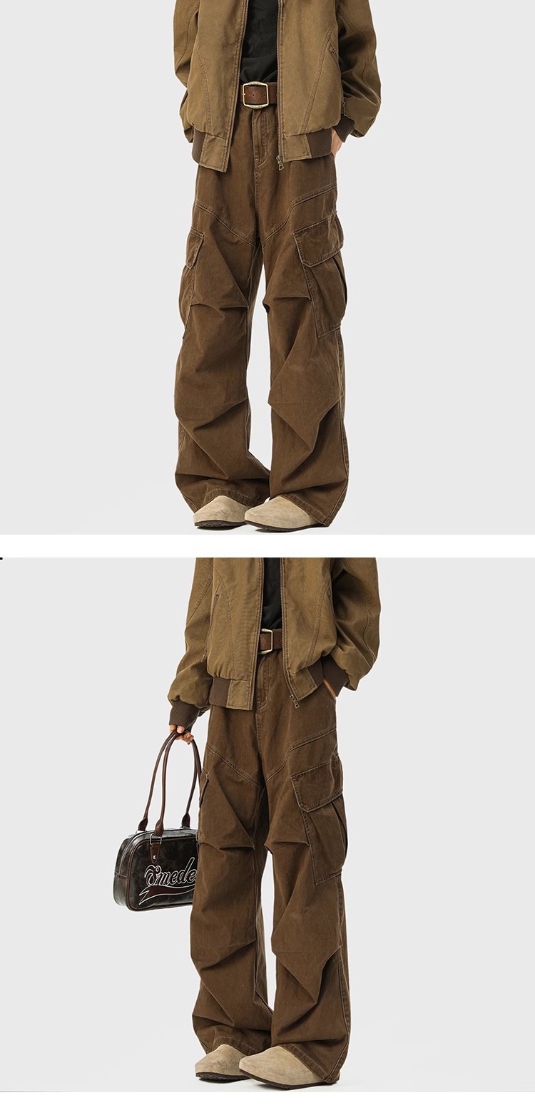 아메리칸 스타일 레트로 멀티 포켓 쿠션 바지 남성용 가을/겨울 마일러 다크 브라운 바지 클렌핏 마이크로 라르 청바지스토어 가기