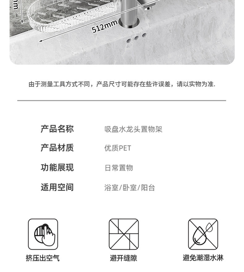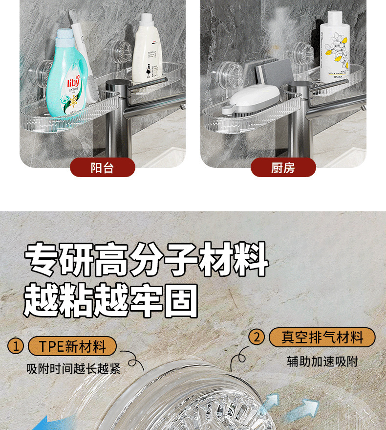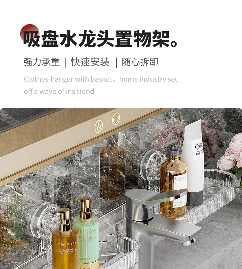 후크 펀치가없는 수도꼭지 선반이있는 욕실 화장품 보관 랙 흡입 유형 화장실 보관 랙