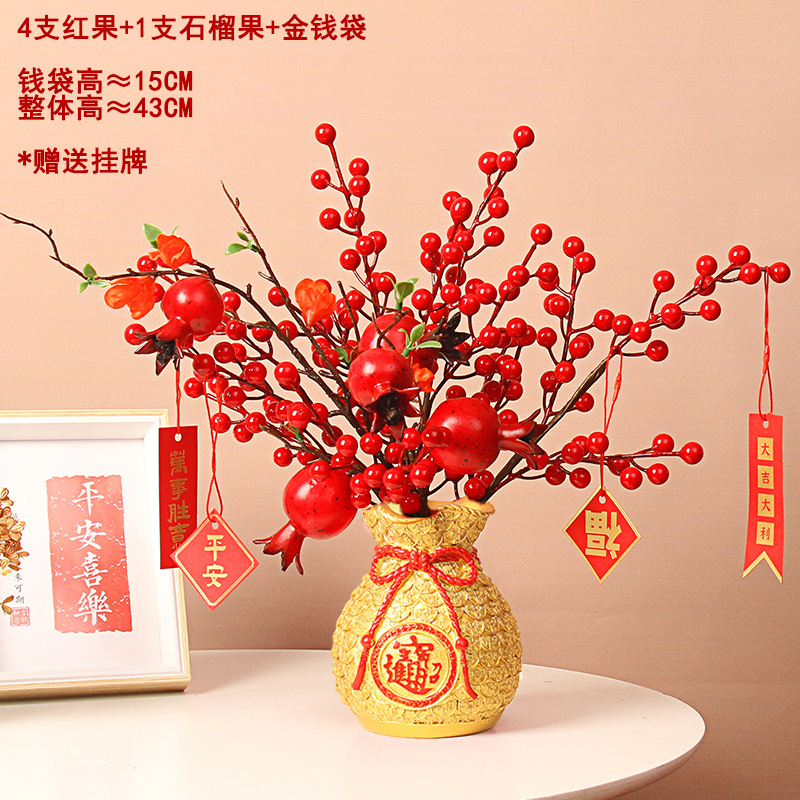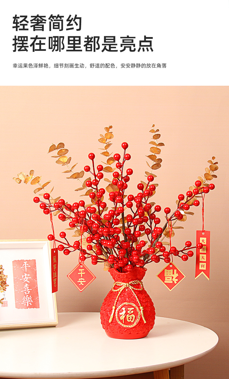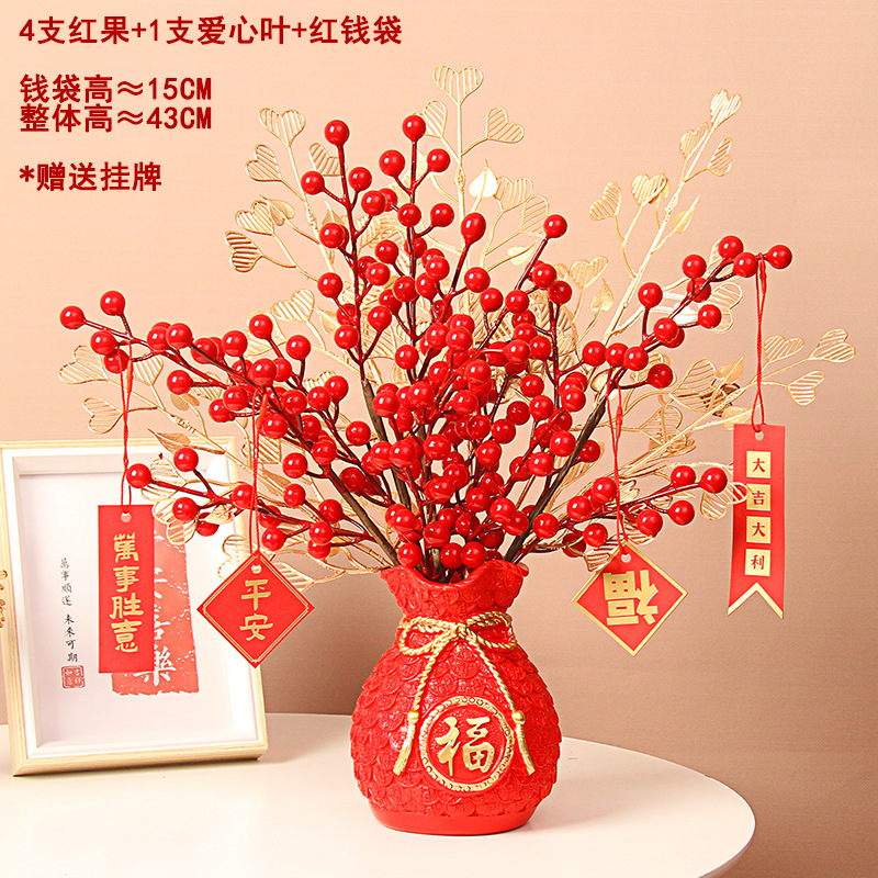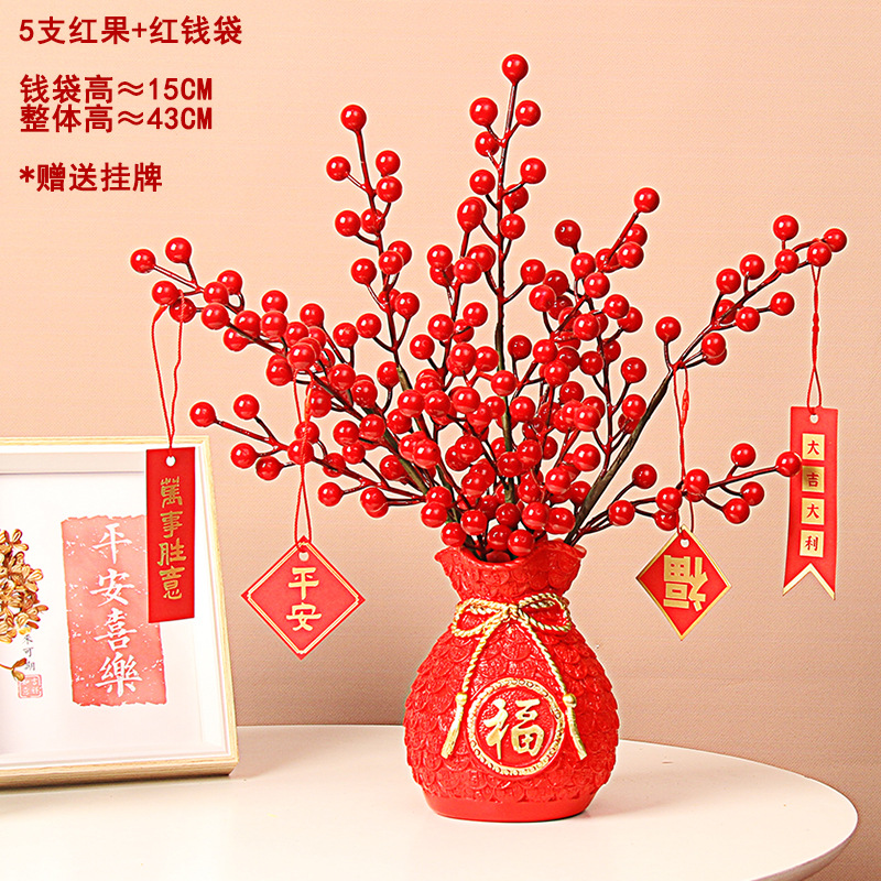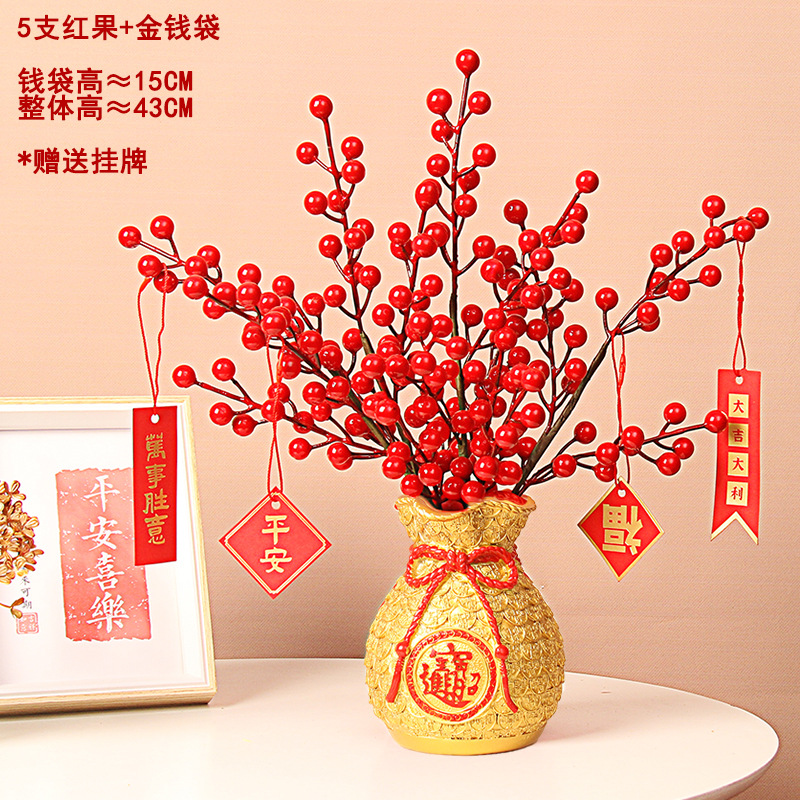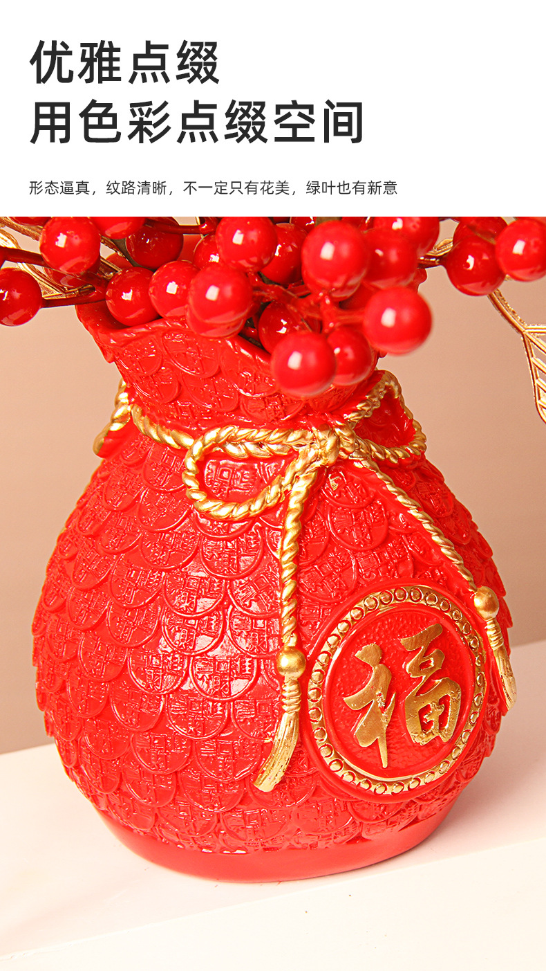 수지 가방 꽃병 장식품 돈 가방 밀 귀 붉은 과일 거실 풍수 장식품 새해 집들이 사업 장식