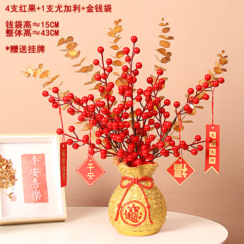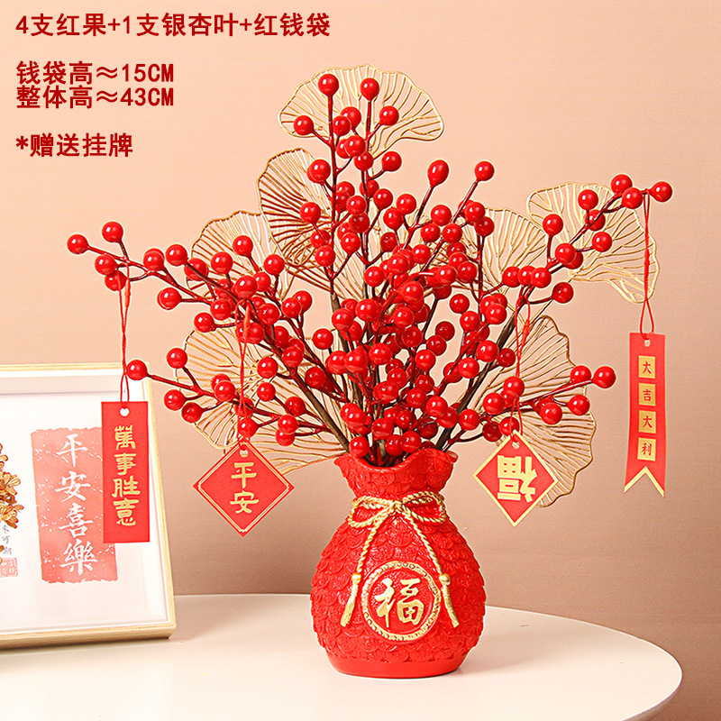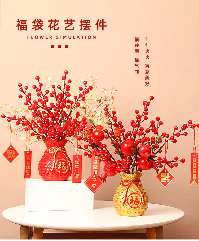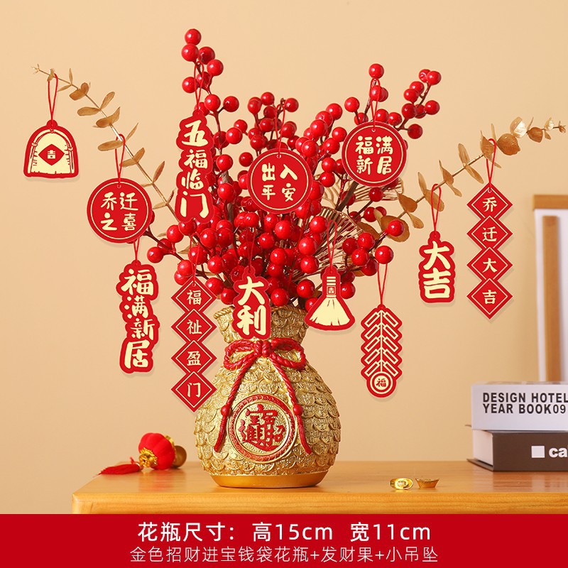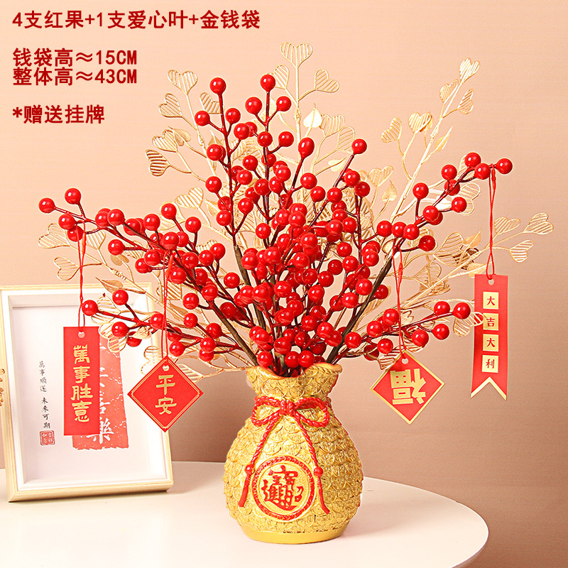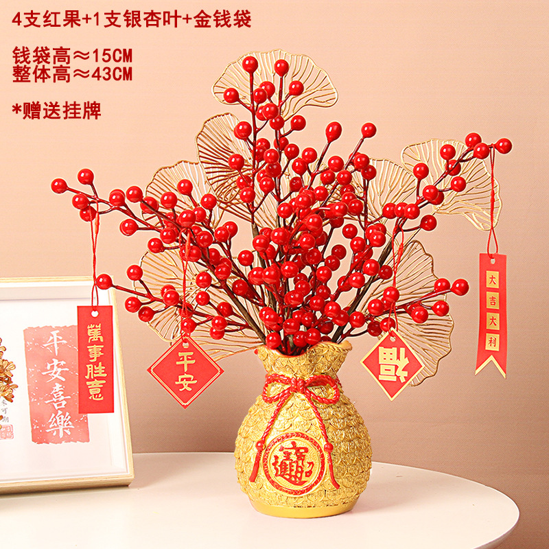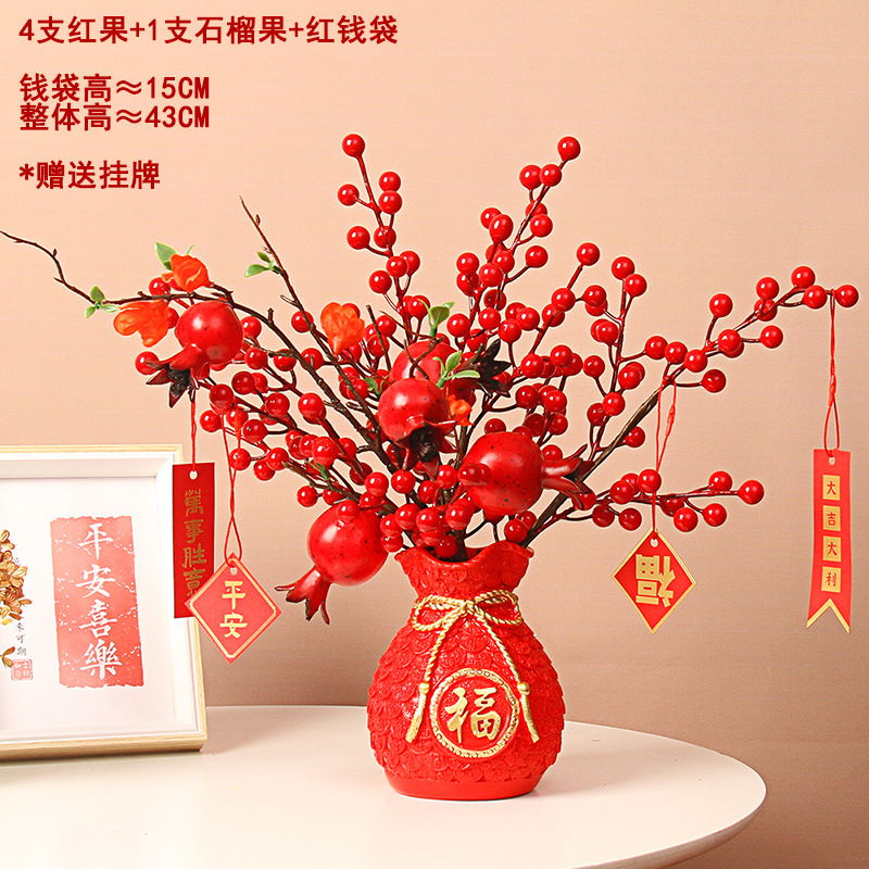 수지 가방 꽃병 장식품 돈 가방 밀 귀 붉은 과일 거실 풍수 장식품 새해 집들이 사업 장식