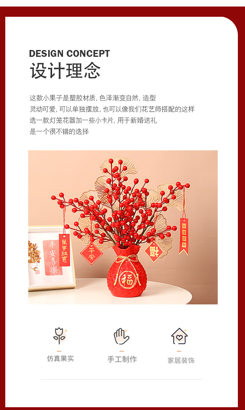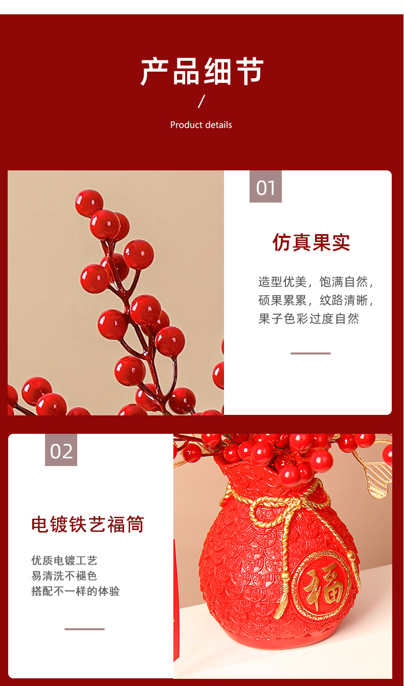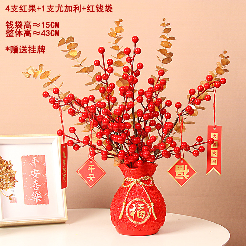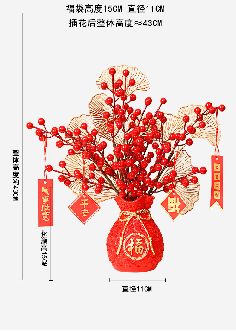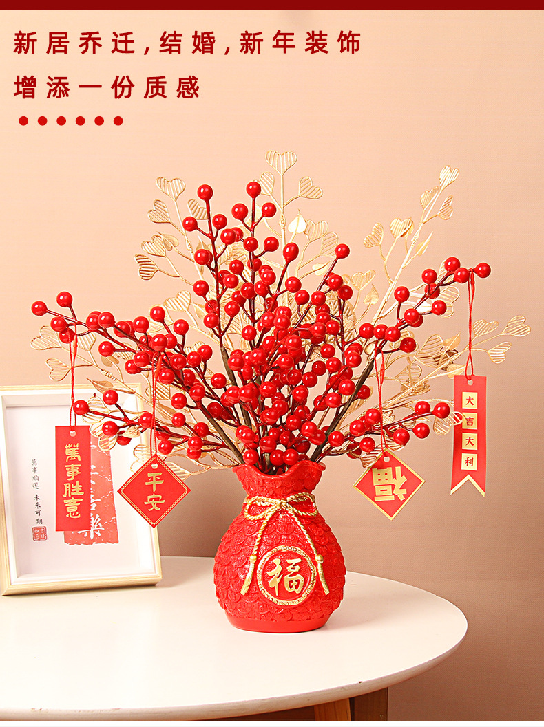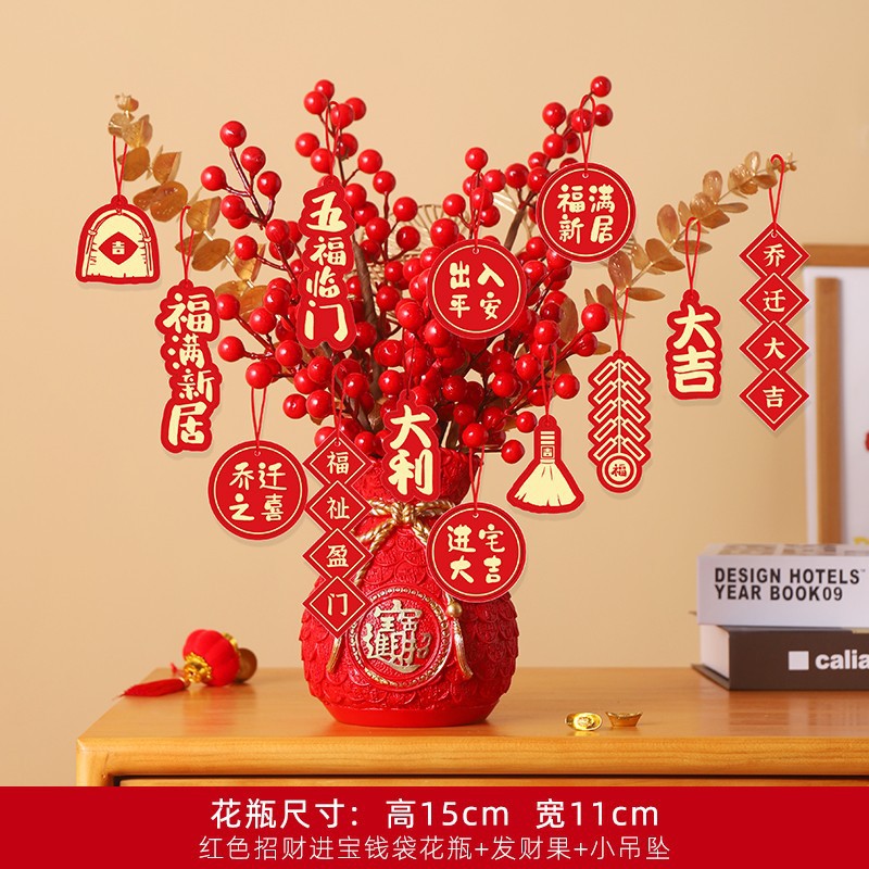 수지 가방 꽃병 장식품 돈 가방 밀 귀 붉은 과일 거실 풍수 장식품 새해 집들이 사업 장식