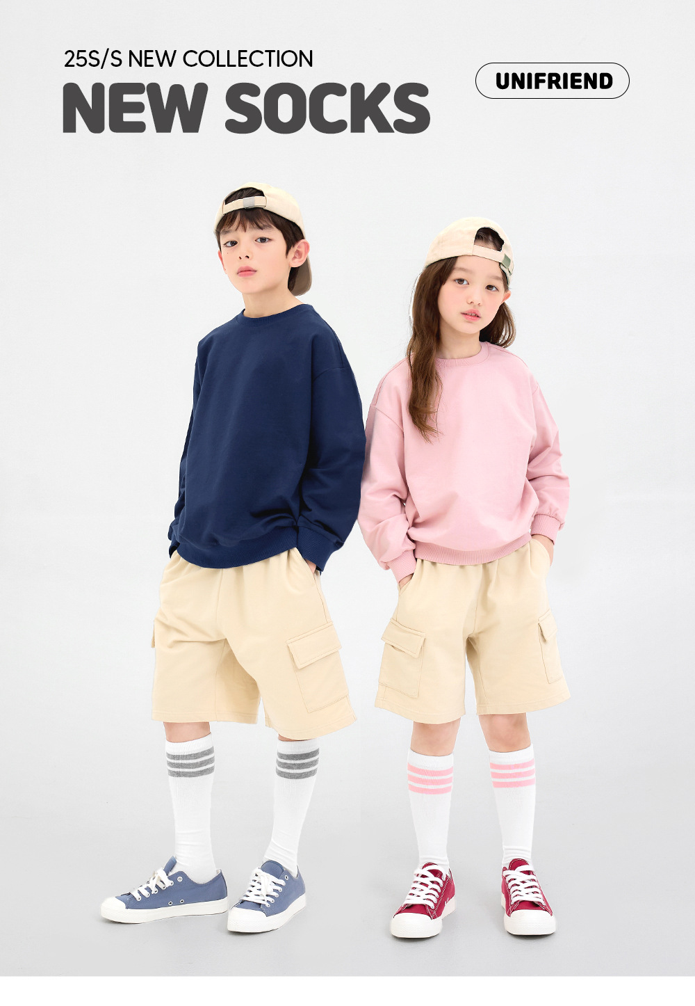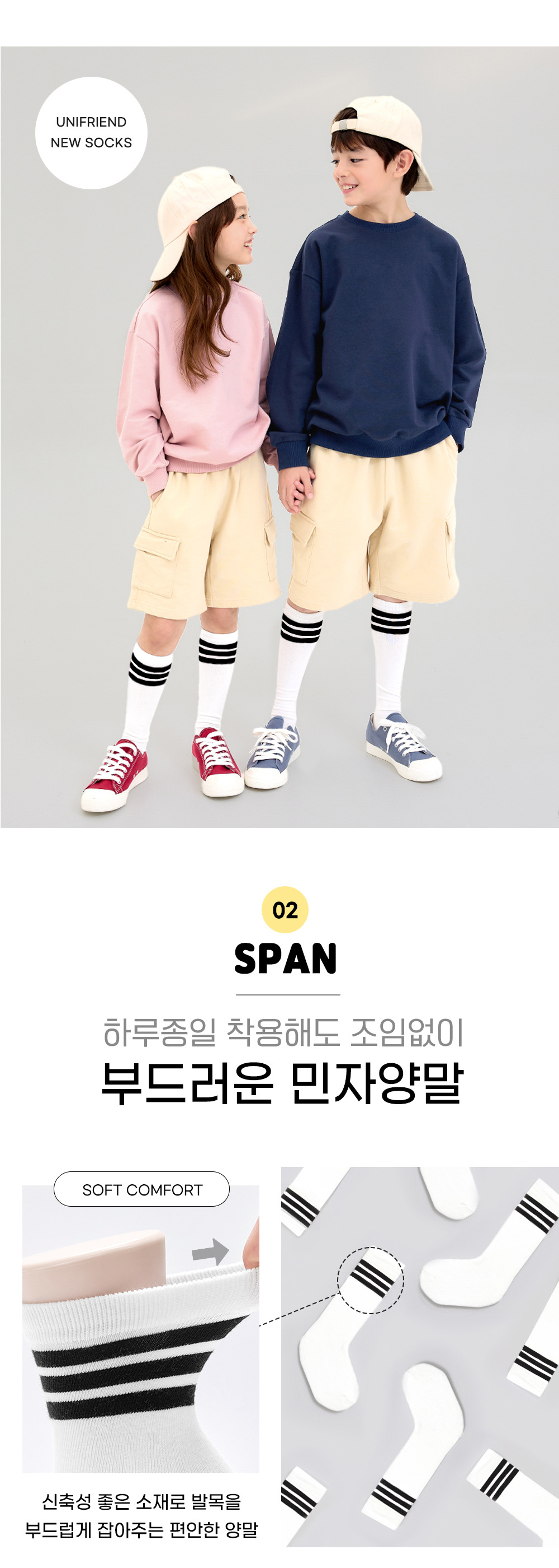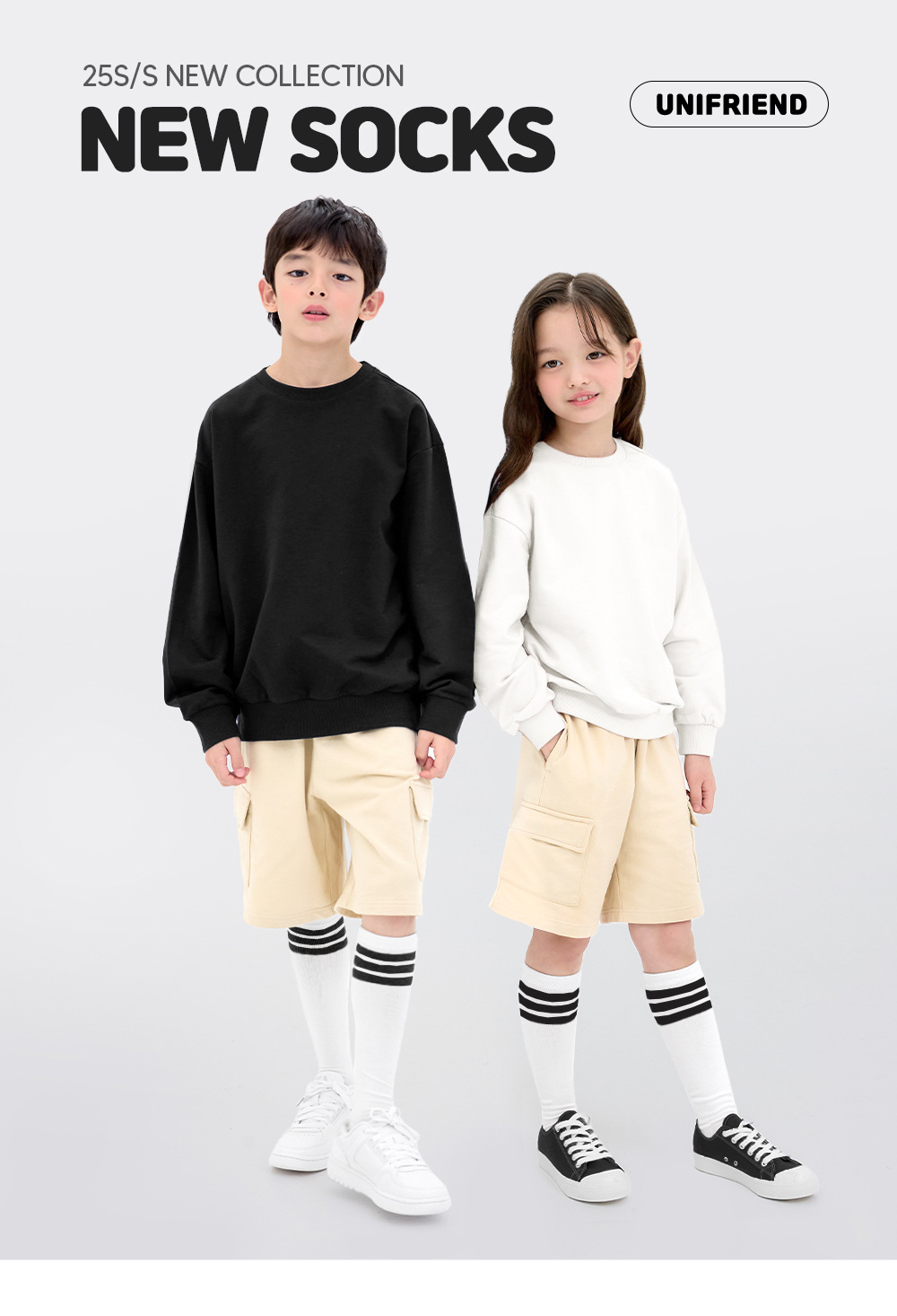 유니프렌드 한국 봄 여름 흰색 학생 양말 여아 롱삭스 아동 양말 중대형 어린이 남아 스포츠 양말