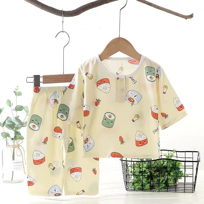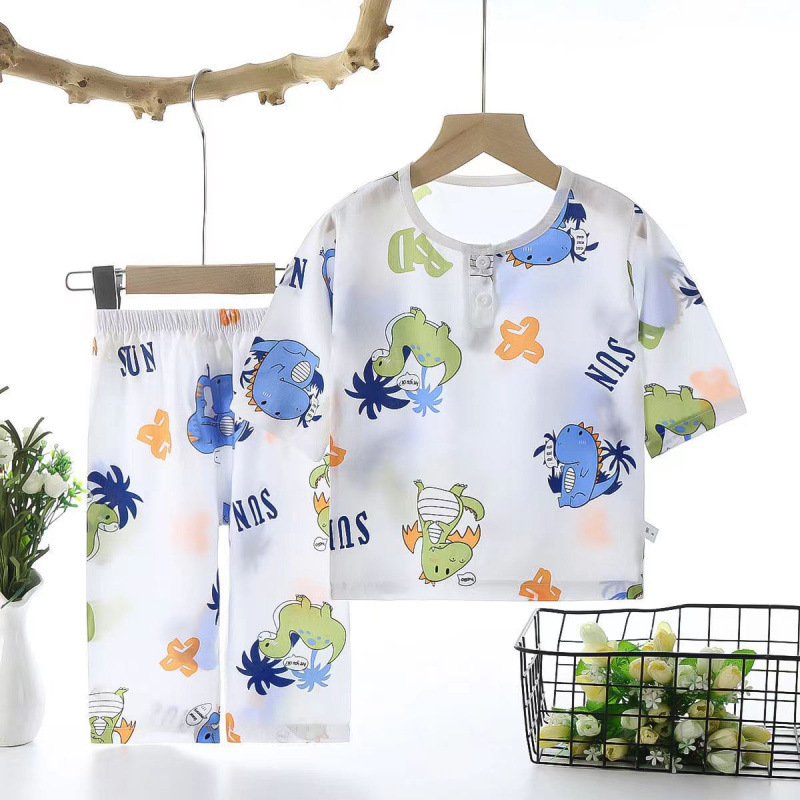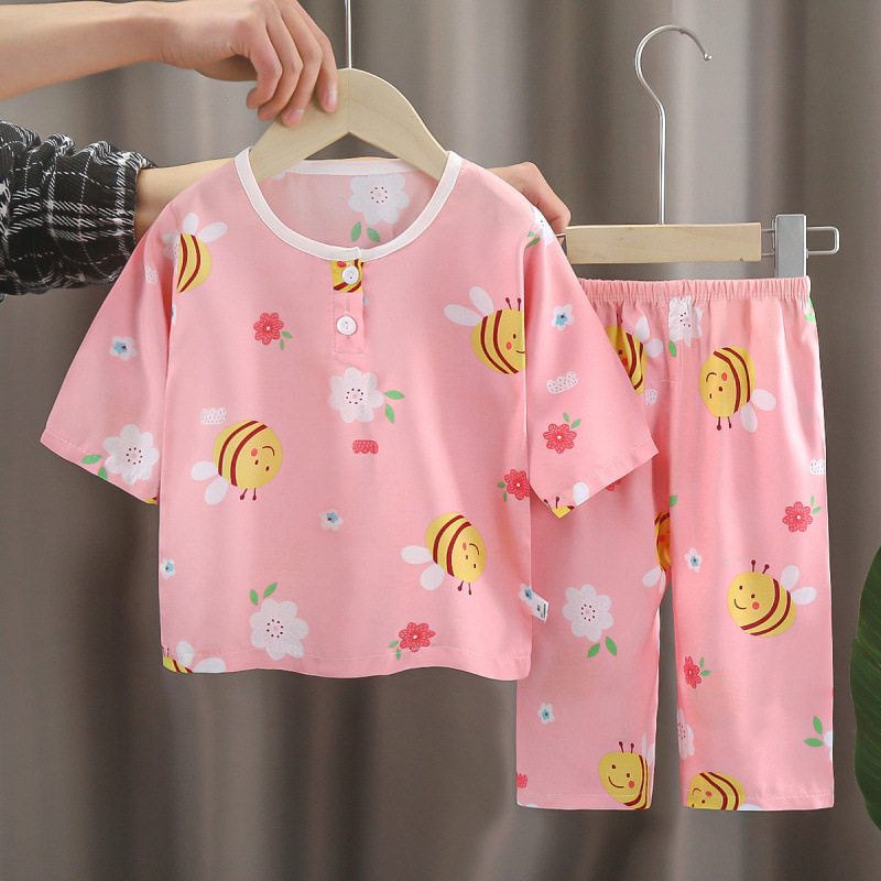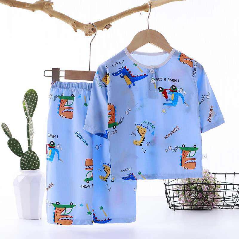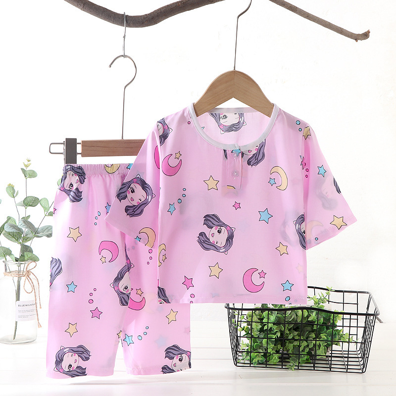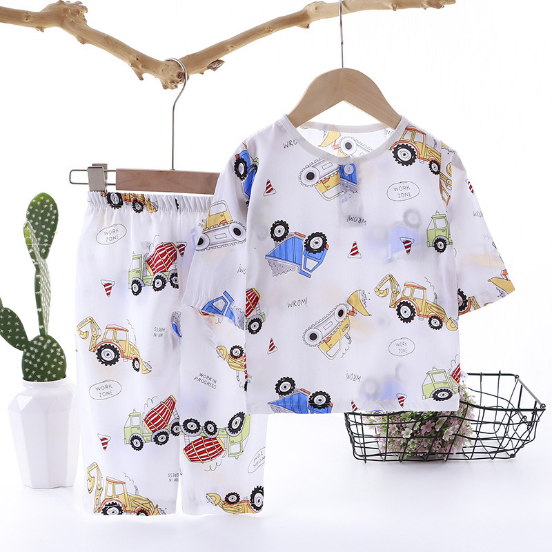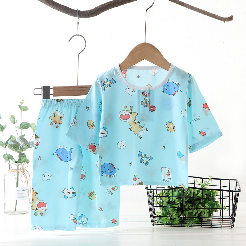 어린이 의류 여름 어린이 잠옷 면 실크 홈 의류 세트 소년 소녀 아기 얇은 에어컨 옷 아기 잠옷스토어 가기