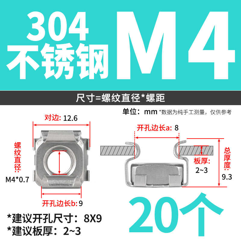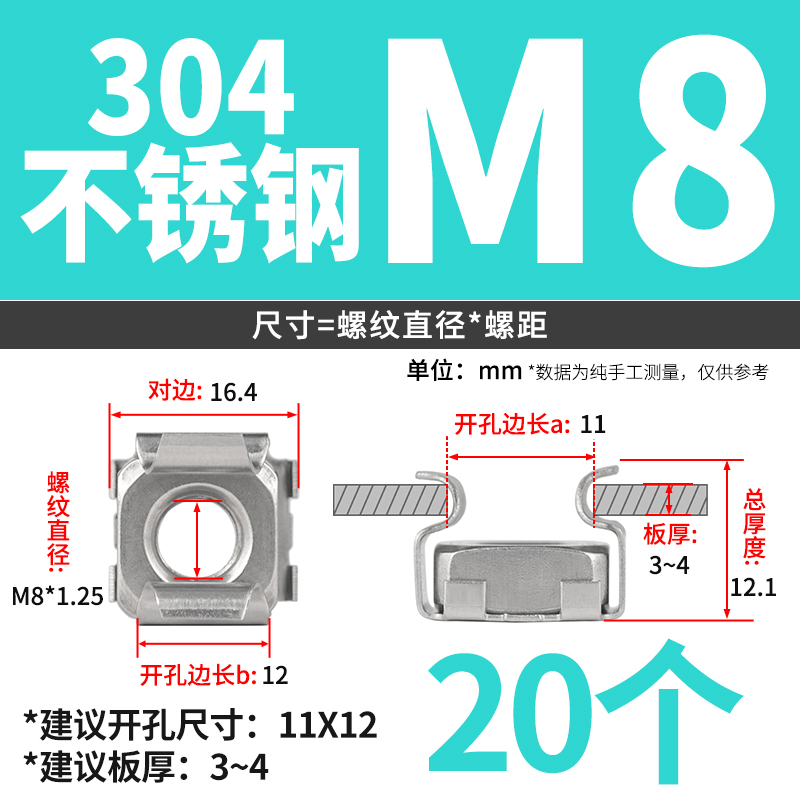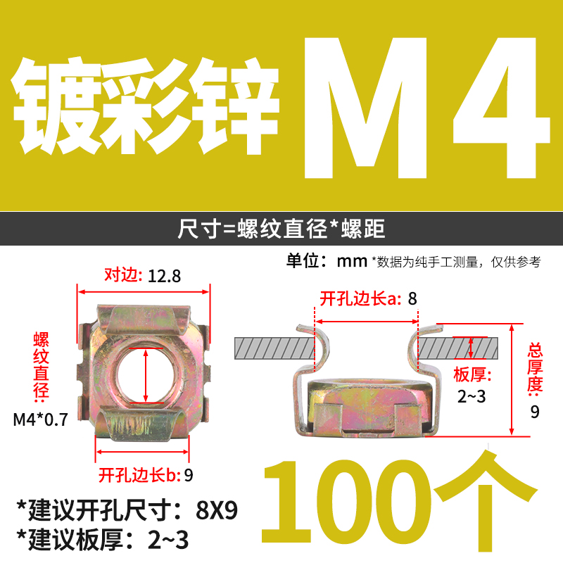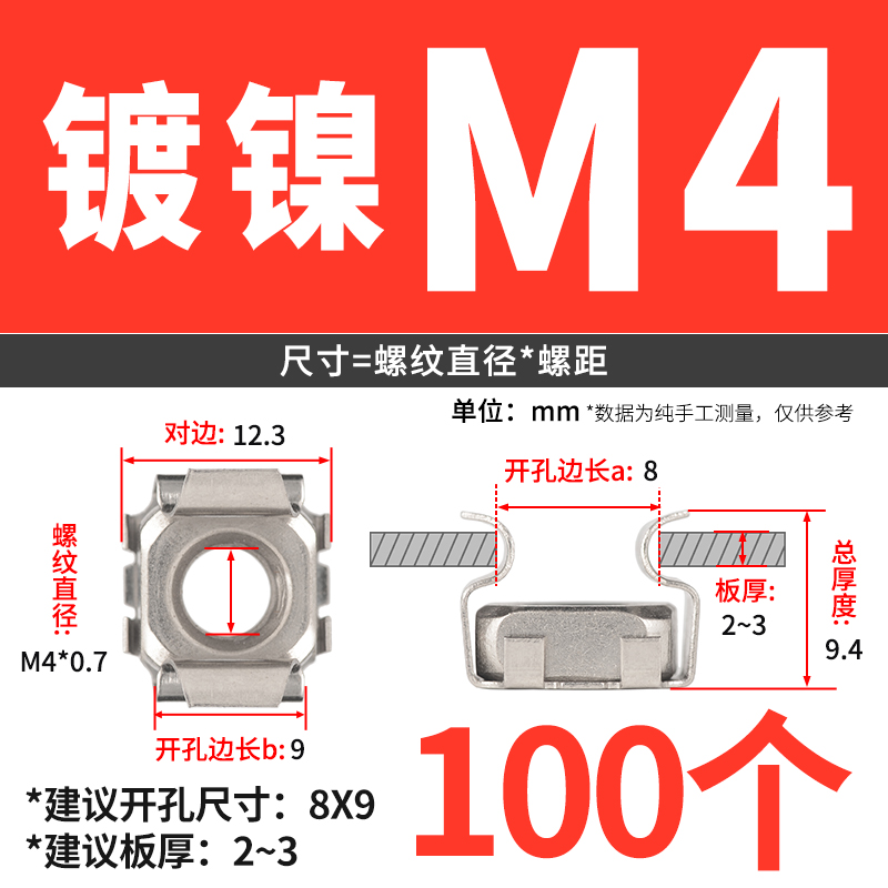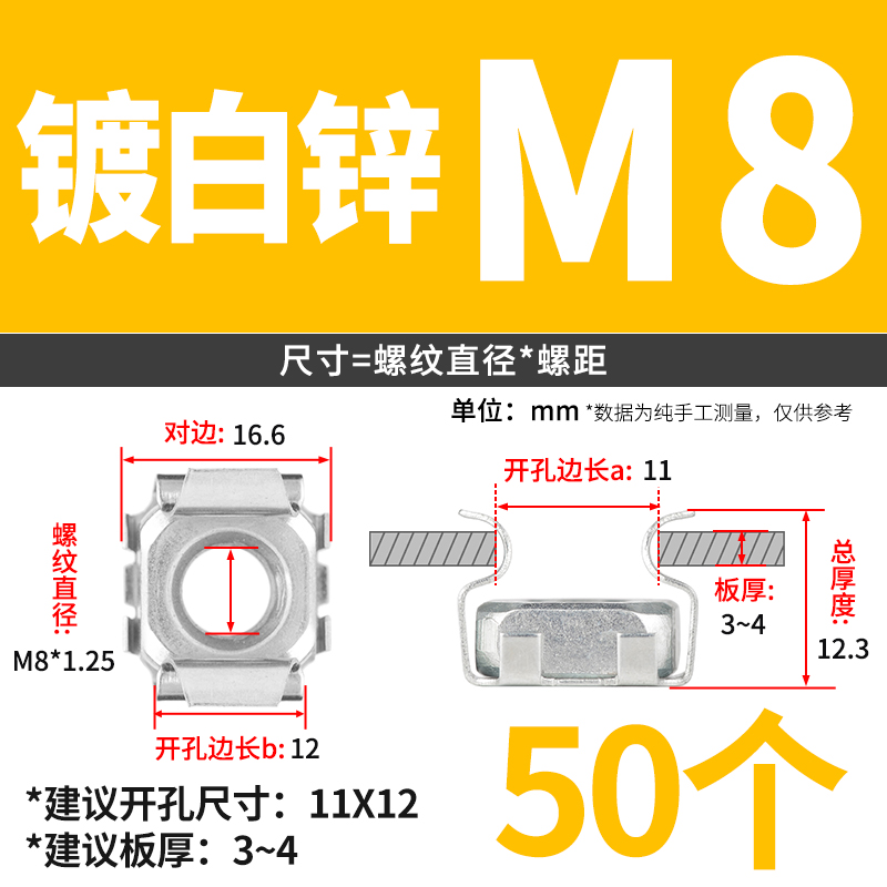 케이지 너트 부동 케이지 캐비닛 너트 철 클램프 너트 철판 사각 너트 버클 너트 6 배스토어 가기
