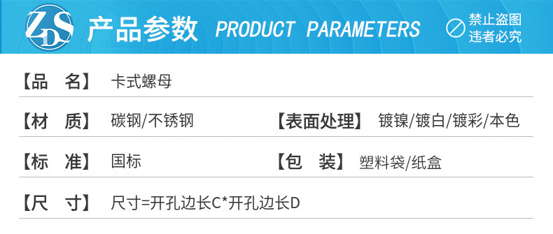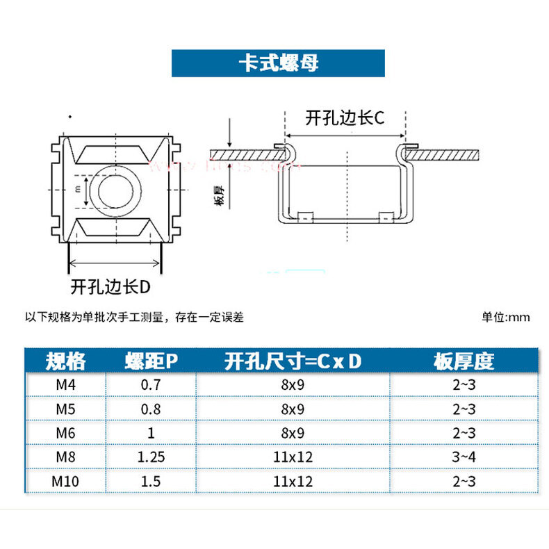 케이지 너트 부동 케이지 캐비닛 너트 철 클램프 너트 철판 사각 너트 버클 너트 6 배