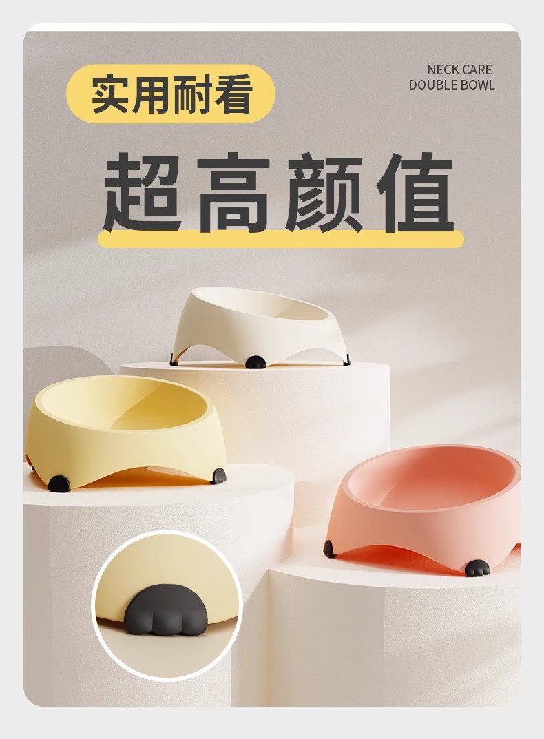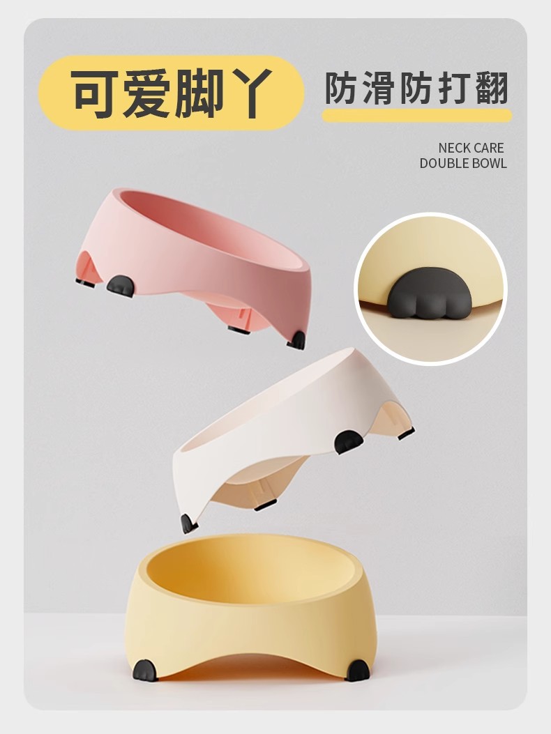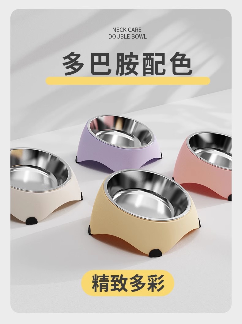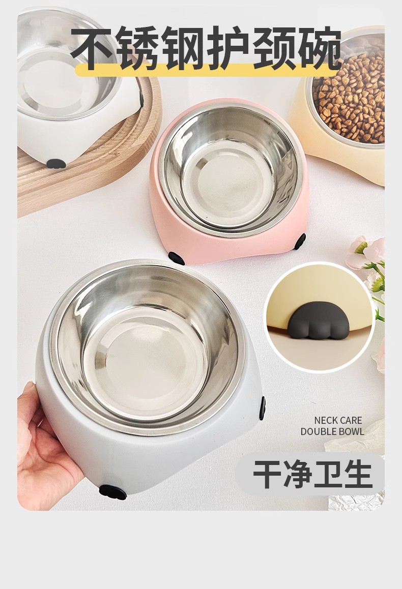 사랑스러운 고양이 그릇 고양이 먹이 분지 마시는 고양이 음식은 스테인리스 스틸 안티 블랙 턱 대형 구경 그릇을 던지기 쉽지 않은 자궁 경부 척추 보호를합니다