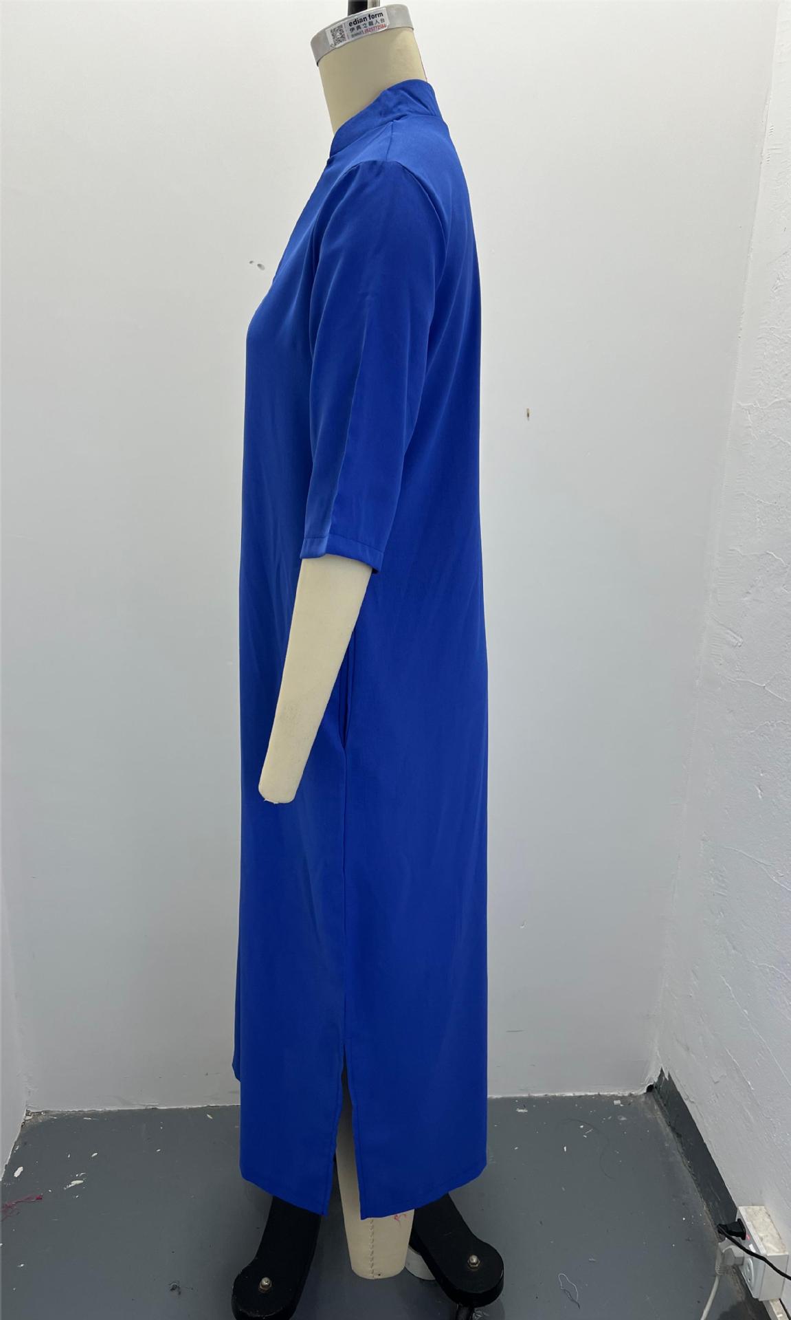 2025 Amazon Independent Station 유럽과 미국 여성의 여름 사이드 벤트 포켓 V-Neck 7 소매 주름 가슴 원피스
