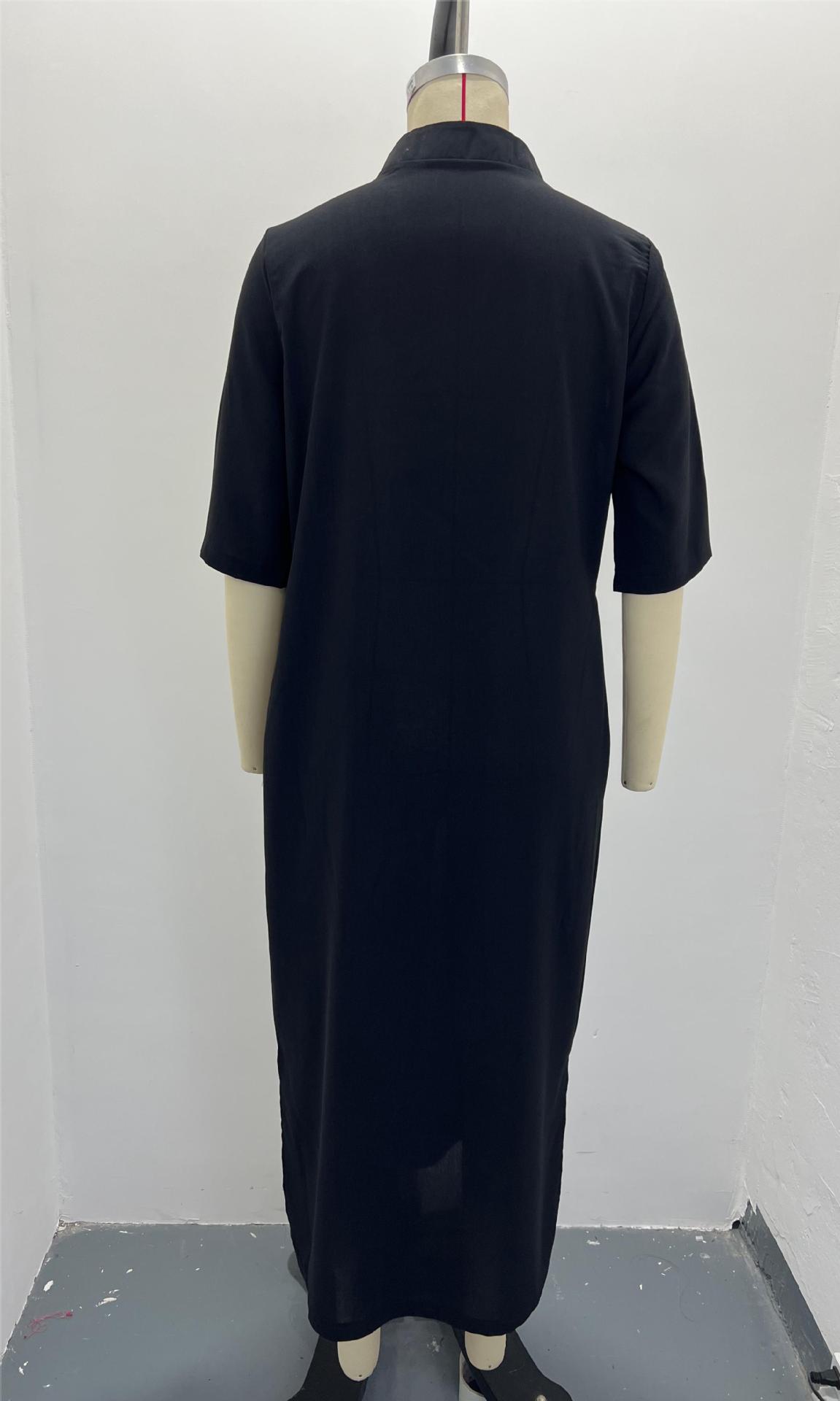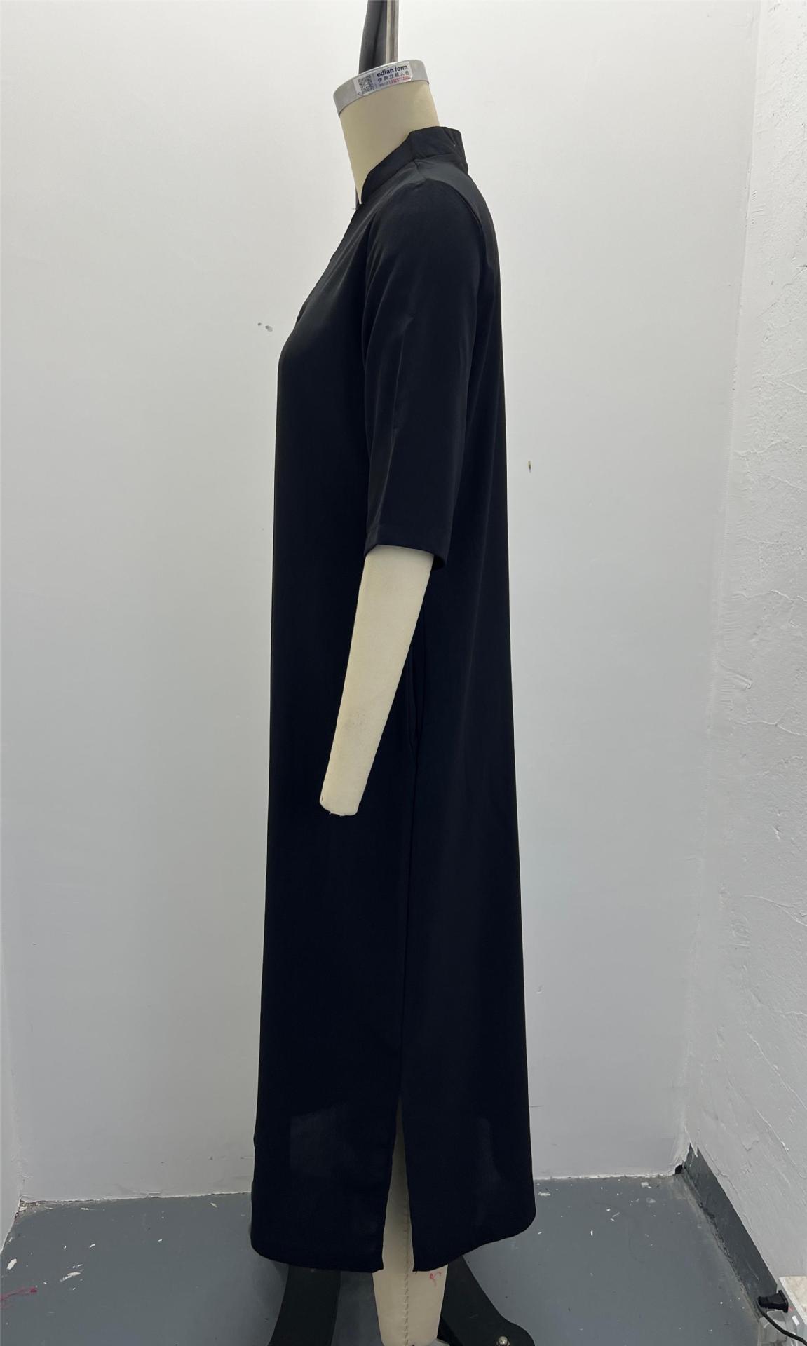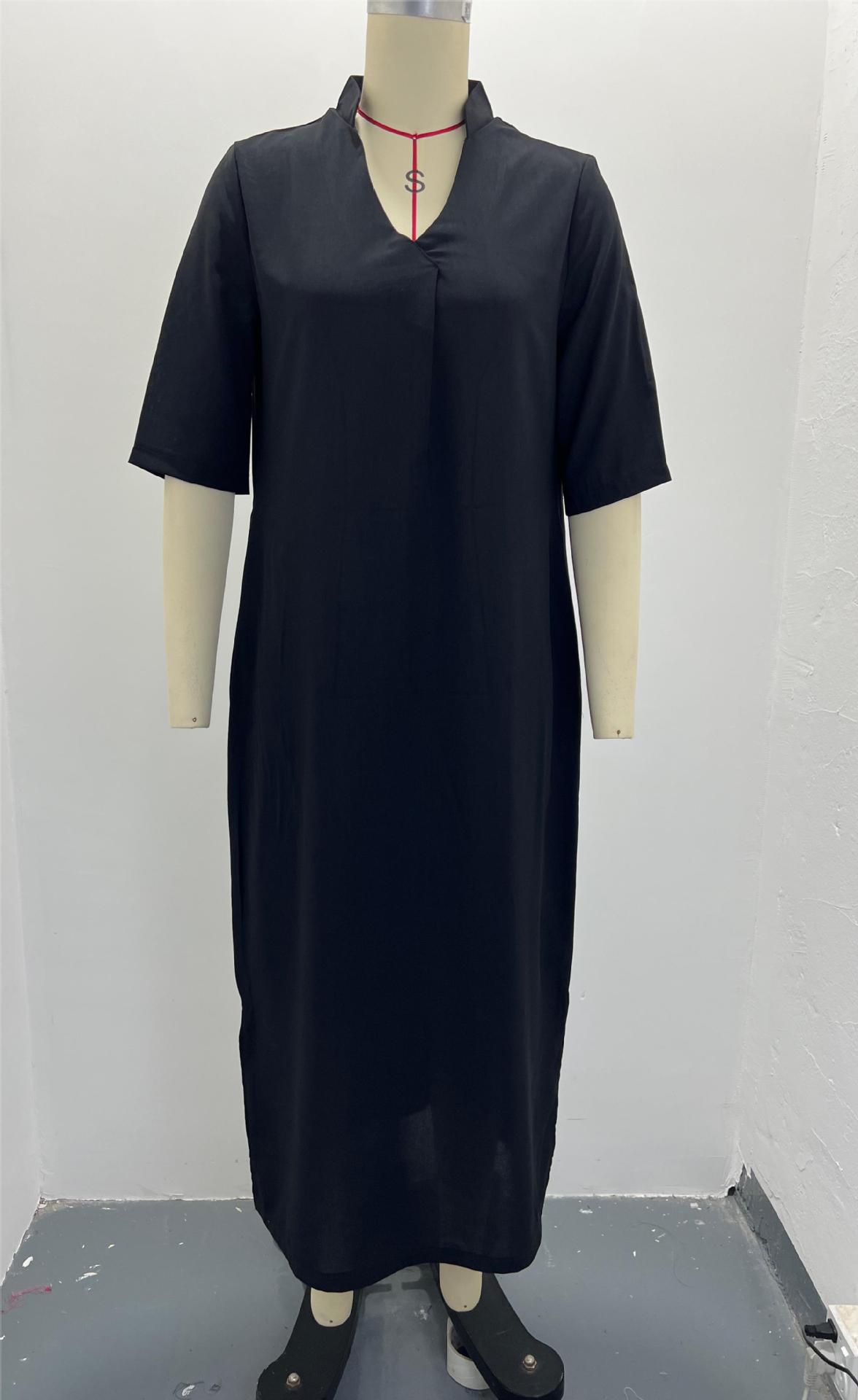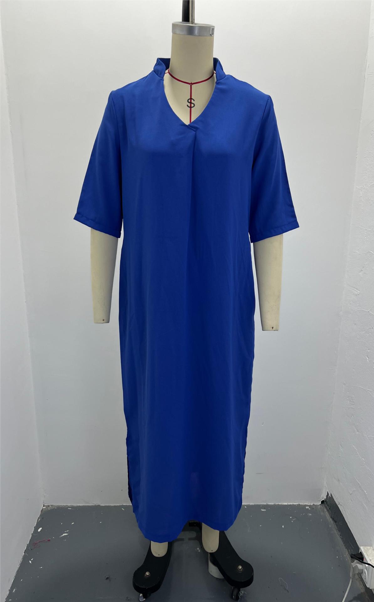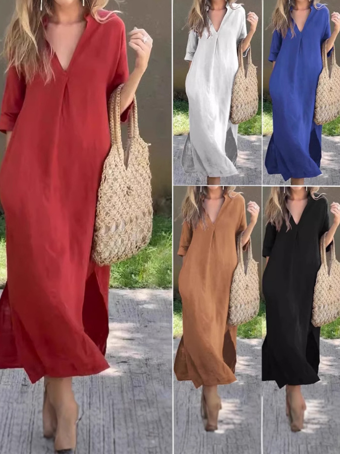 2025 Amazon Independent Station 유럽과 미국 여성의 여름 사이드 벤트 포켓 V-Neck 7 소매 주름 가슴 원피스스토어 가기