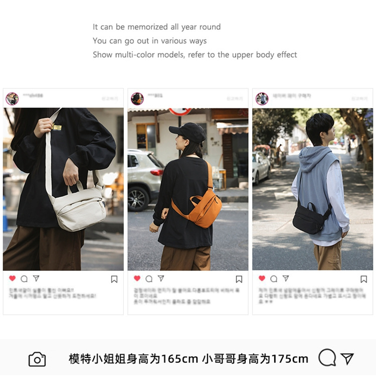 가슴 가방 여성의 캐주얼 홍콩 스타일 어깨 가방 나일론 천 2025 새로운 도착 핸드백 문자 방수 학생 크로스 바디 가방 남성용스토어 가기