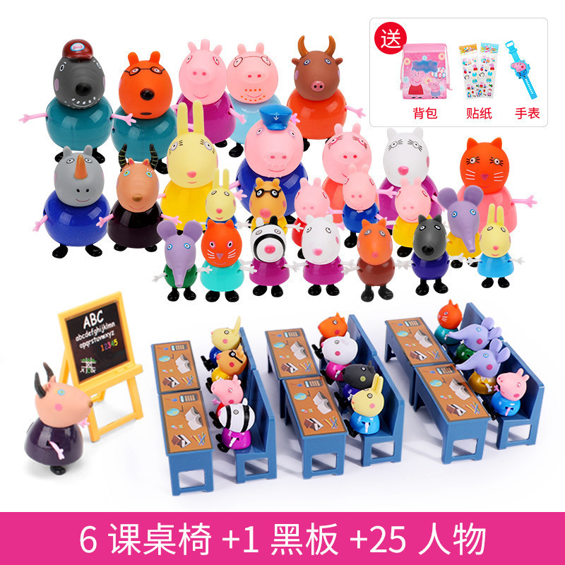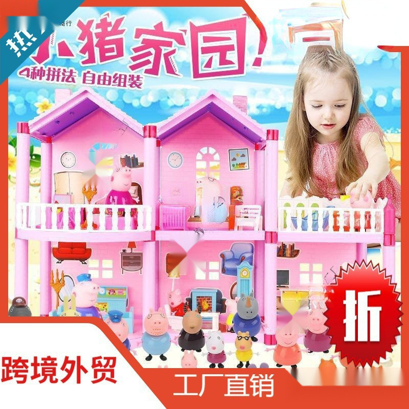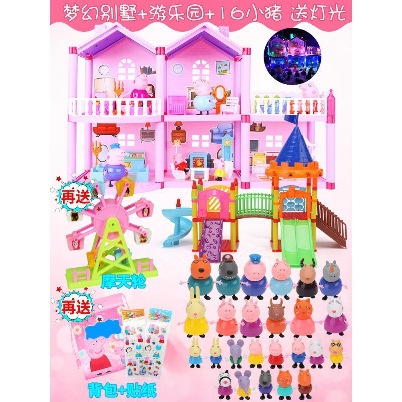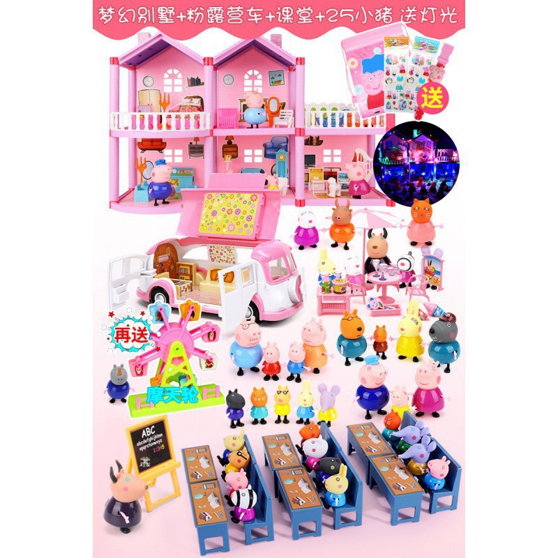 돼지 고기 어린이 페이지 놀이 집 장난감 페이지 인형 소녀 자동차 가족 4 집 인형 세트 어린이 가방