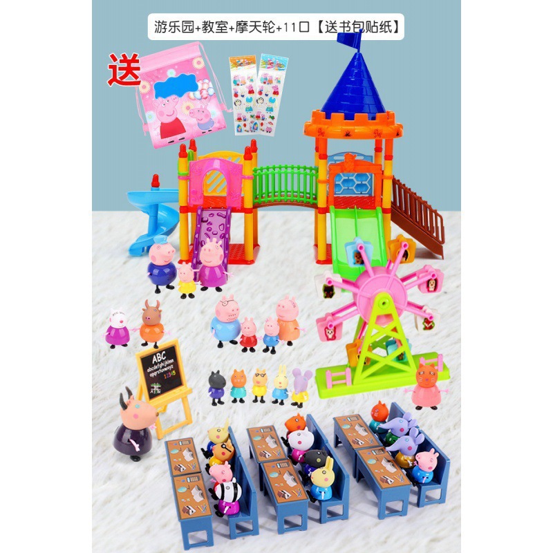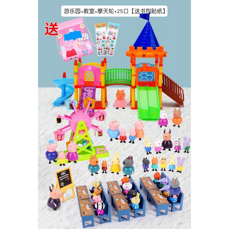 • 양면 + 빨간차 + 놀이터 + 교실 + 새끼 돼지 25마리 (무료 백팩 + 스티커)