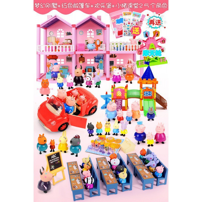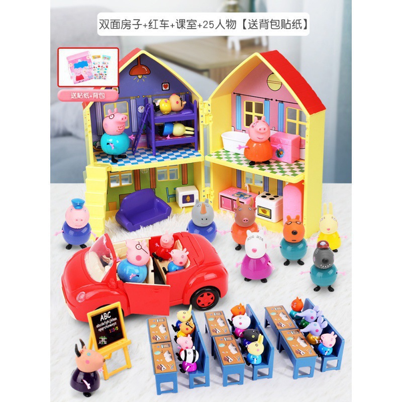 • 양면집 + 빨간차 + 교실 + 새끼 돼지 25마리 (무료 백팩 + 스티커)
