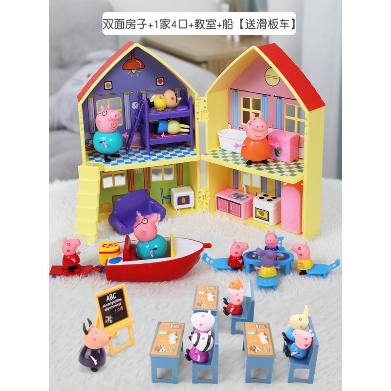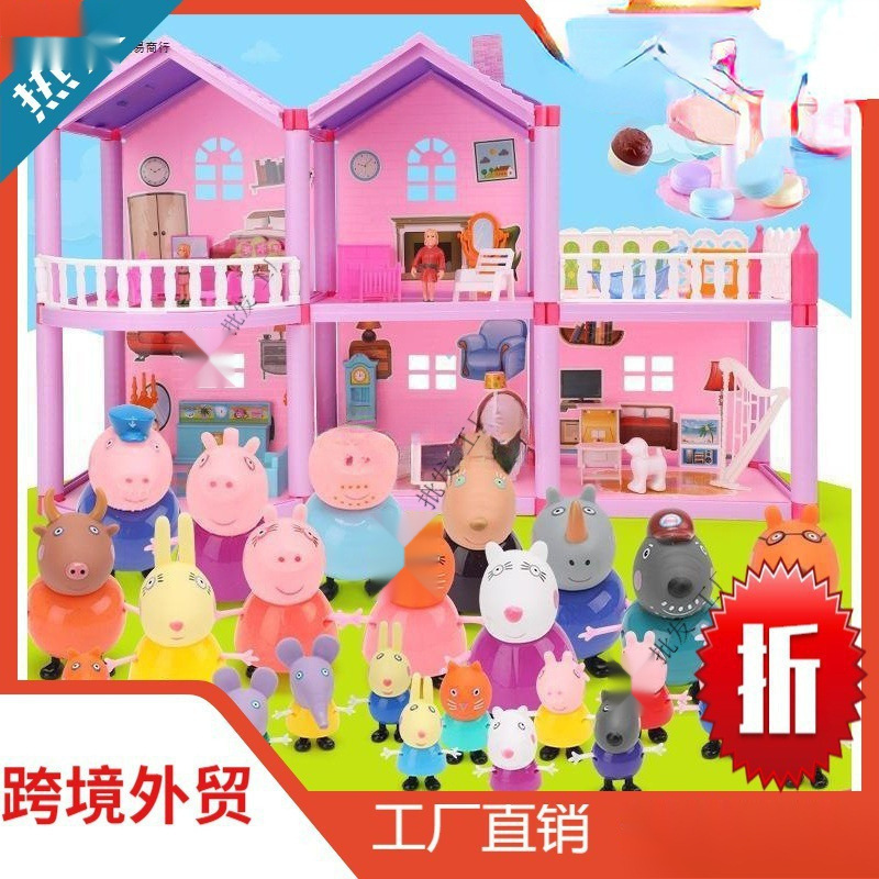 돼지 고기 어린이 페이지 놀이 집 장난감 페이지 인형 소녀 자동차 가족 4 집 인형 세트 어린이 가방스토어 가기
