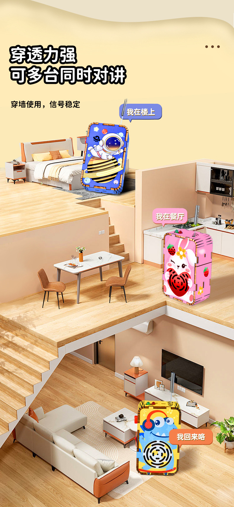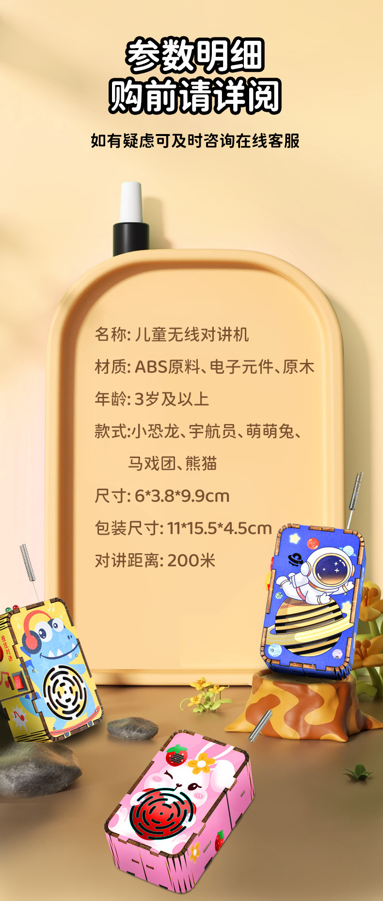 • 워키토키 단일 패키지 - 고품질 참피나무(안료 없음) + 배터리 3개