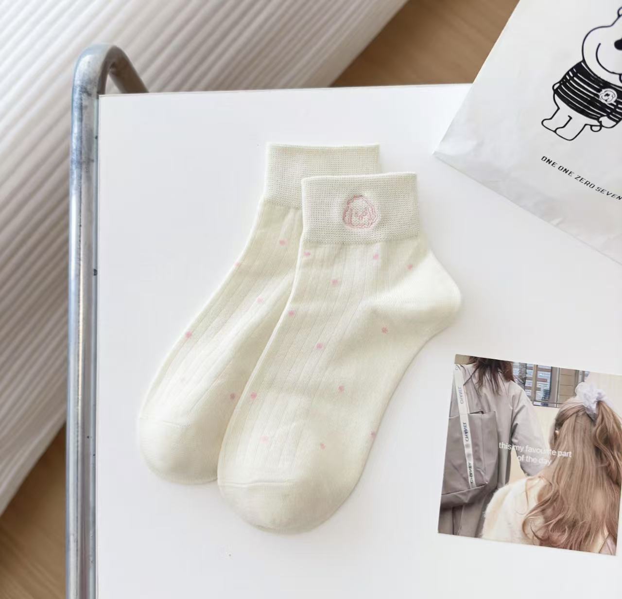 귀여운 핑크 양말 여자 줄무늬 편지 중간 길이 양말 인스타그램 스타일 유행 올매치 가을 한국 스타일 스포츠 스타킹 새로운 도착