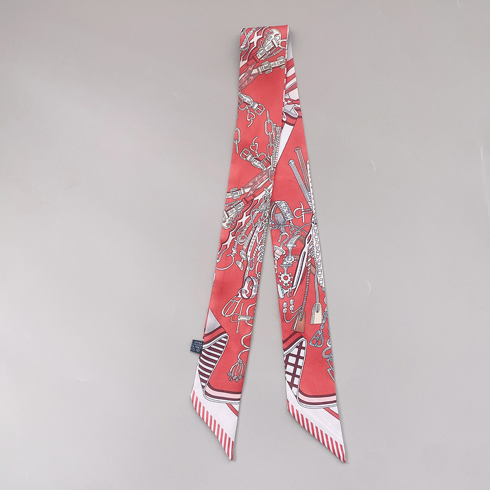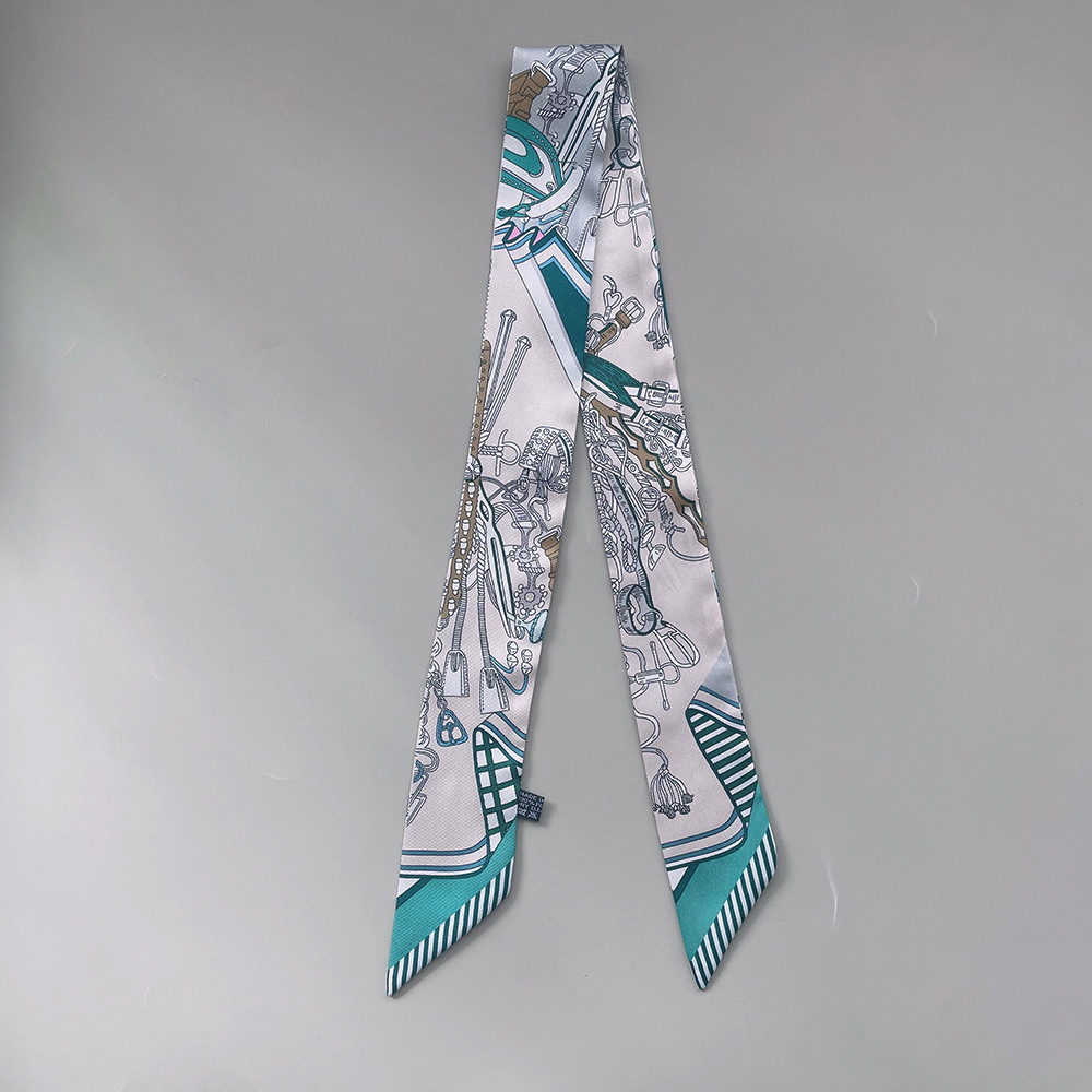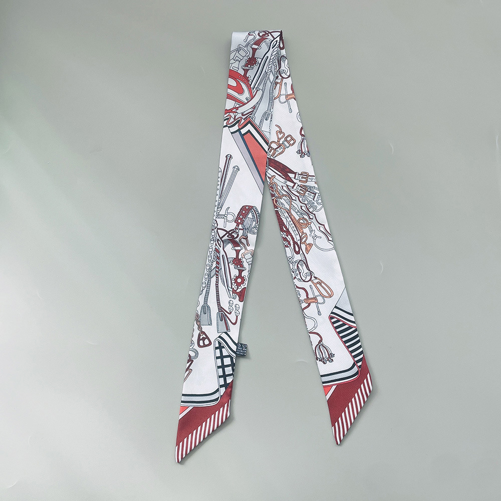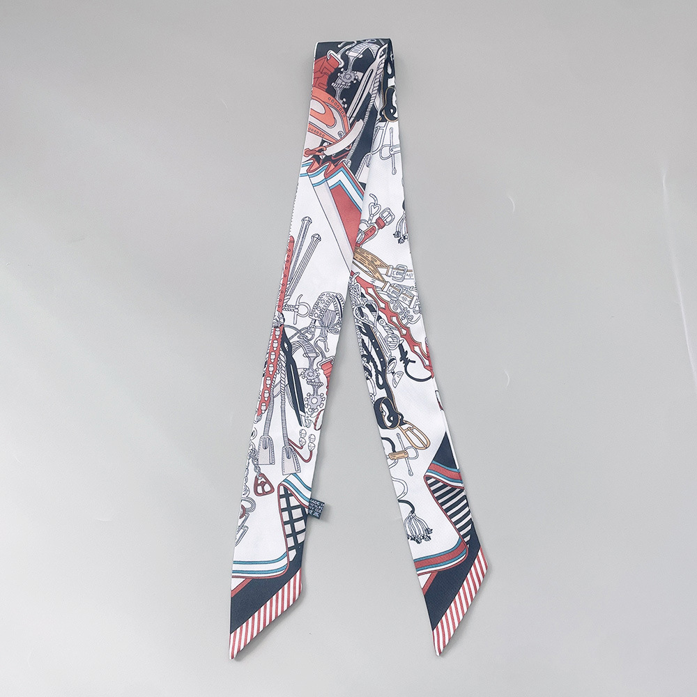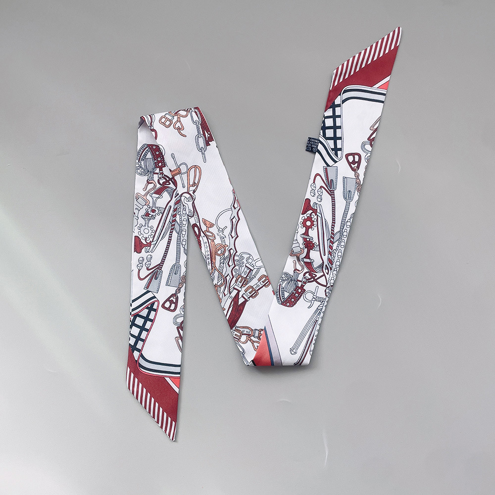 한국 스타일 봄 새로운 체인 잠금 버클 여성용 트윌 장식 리본 타이 백 리본 스카프 작은 스카프