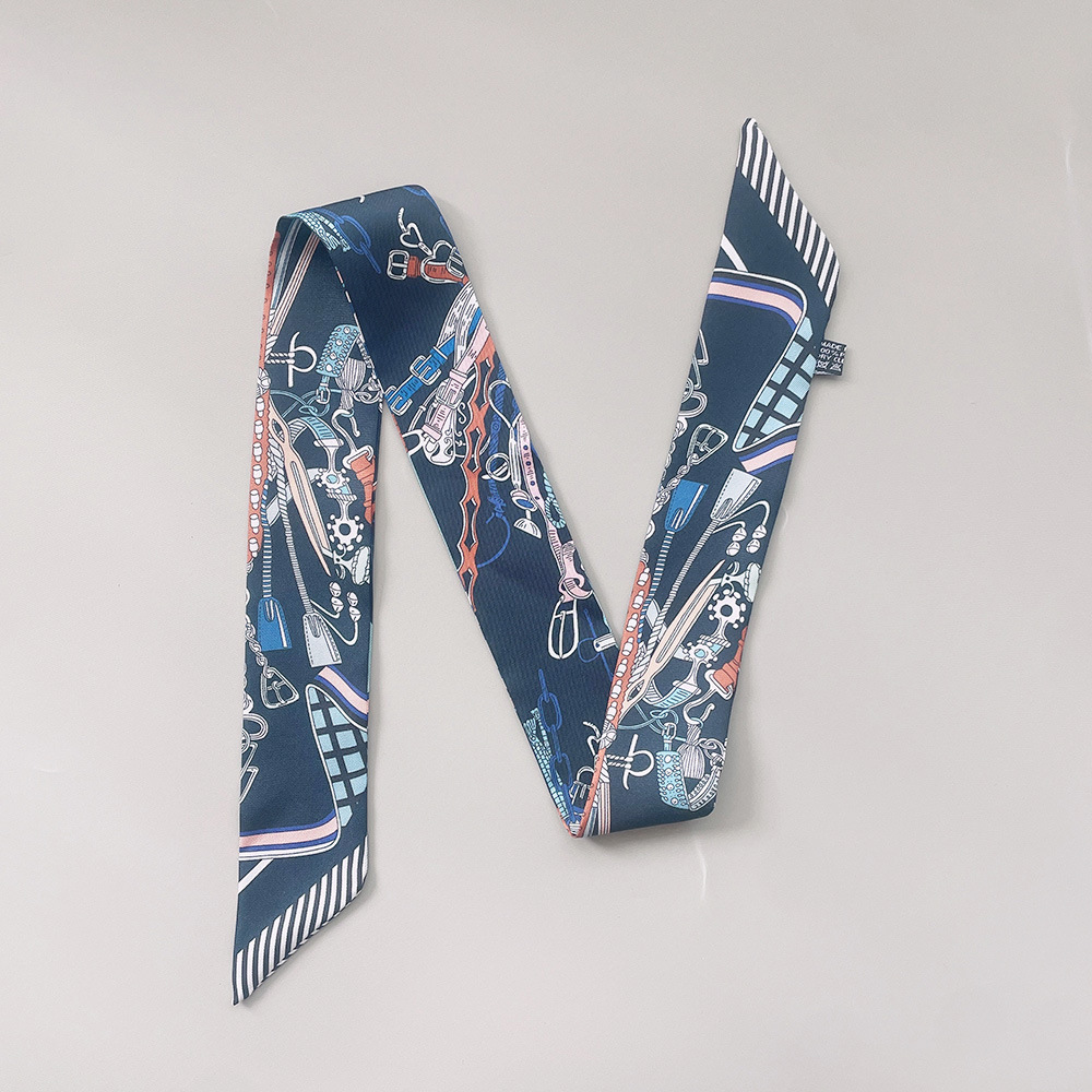 한국 스타일 봄 새로운 체인 잠금 버클 여성용 트윌 장식 리본 타이 백 리본 스카프 작은 스카프스토어 가기