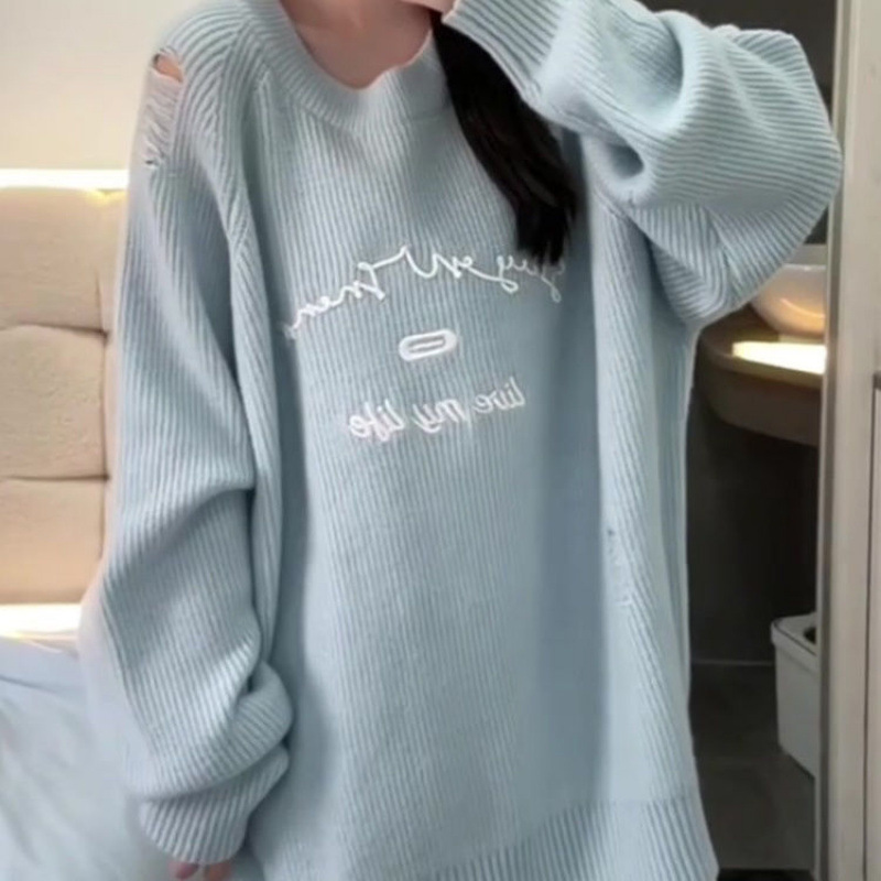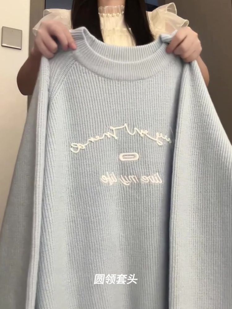 달콤하고 부드러운 스타일 흰색 첫사랑 슬립 스커트 세트 여성의 가을과 겨울 게으른 느슨한 크루 넥 긴팔 풀오버 스웨터스토어 가기