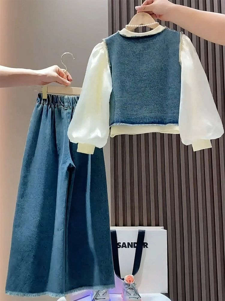 소녀의 봄과 가을 한국식 3 피스 세트 어린이 2025 봄 새로운 유행 자켓베이스 셔츠