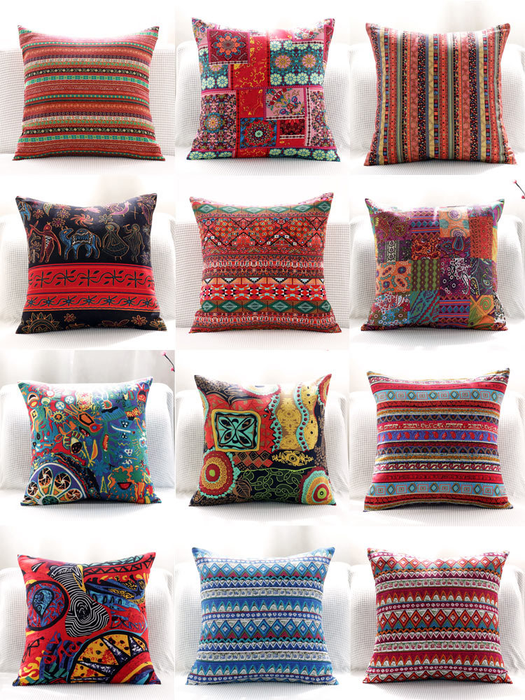 C 레트로 소파 필로우 케이스 민족 스타일 허리 쿠션 보헤미안 백레스트 면 린넨 원단 유럽 중국 스타일 자동차 베개 침대스토어 가기