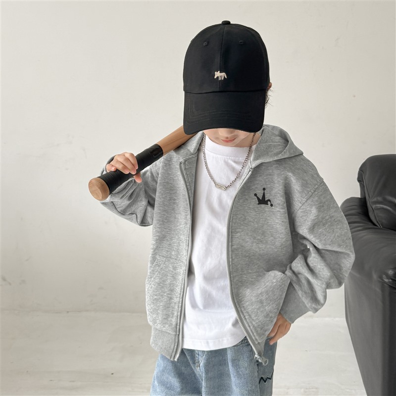 Haimajia 2025 봄, 가을 새로운 스타일 소년 후드 카디건 재킷 유행 스웨트 아동 의류 중대형 어린이를위한 가을 의류스토어 가기