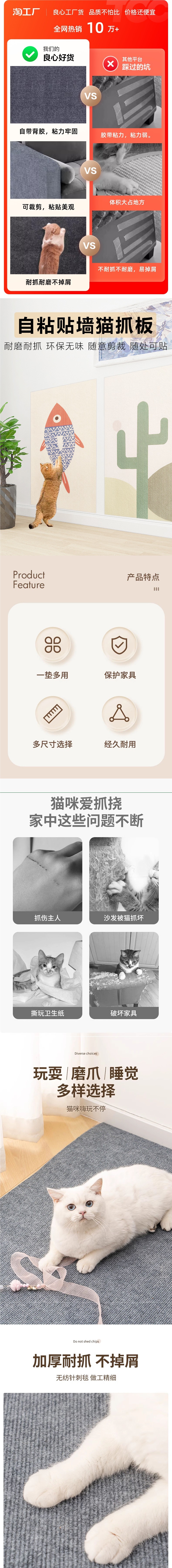 고양이 잡아 당기는 패드 고양이 고양이 굽기 발톱 착용 방지 Disdain Xiao Mao Self-hi 장난감 등반 벽 붙여 넣기 벽 붙여 넣기 자체 접착 직물스토어 가기