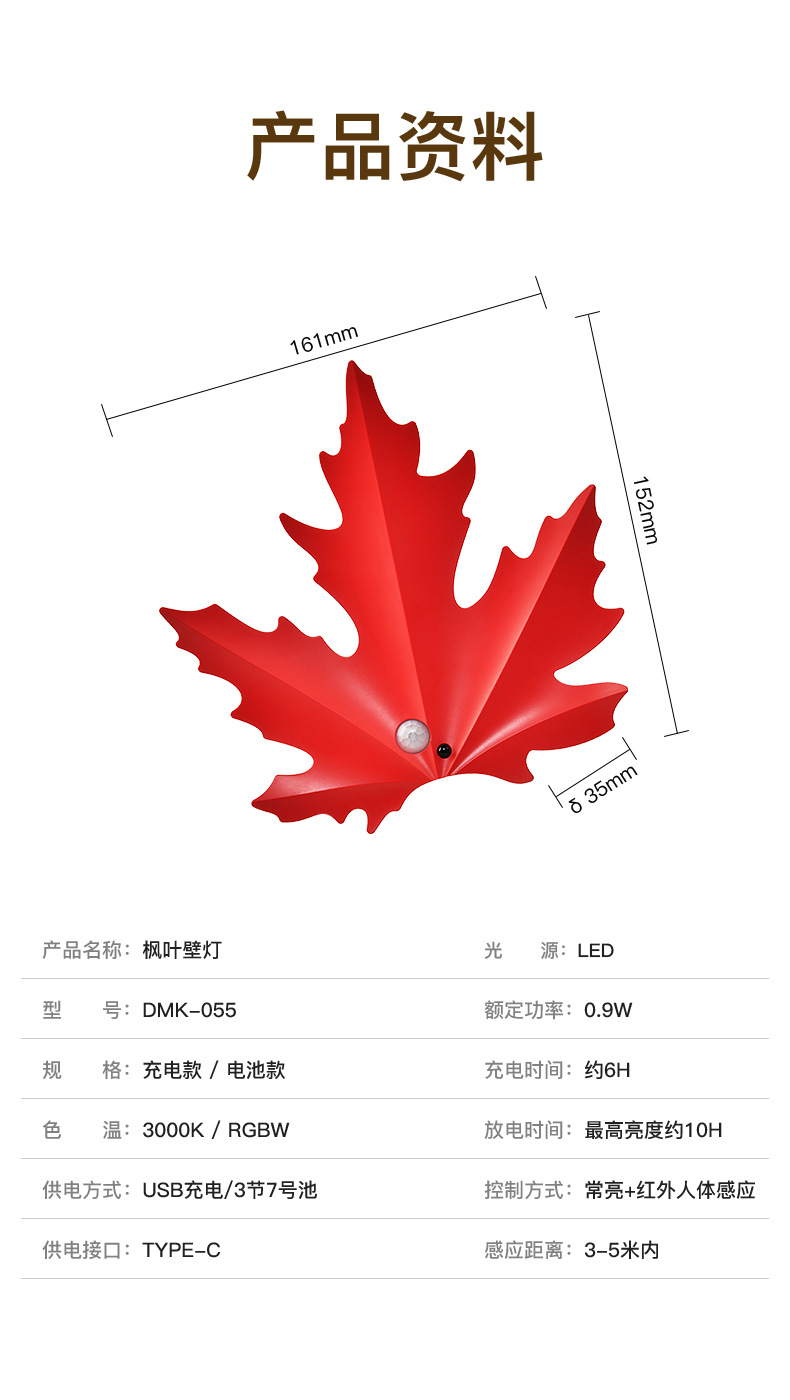• RGB丨단풍잎 벽등/배터리 모델