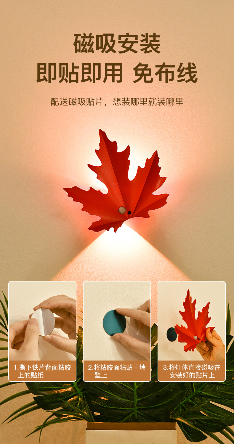 • 따뜻한 빛丨단풍잎 벽등/충전식 모델