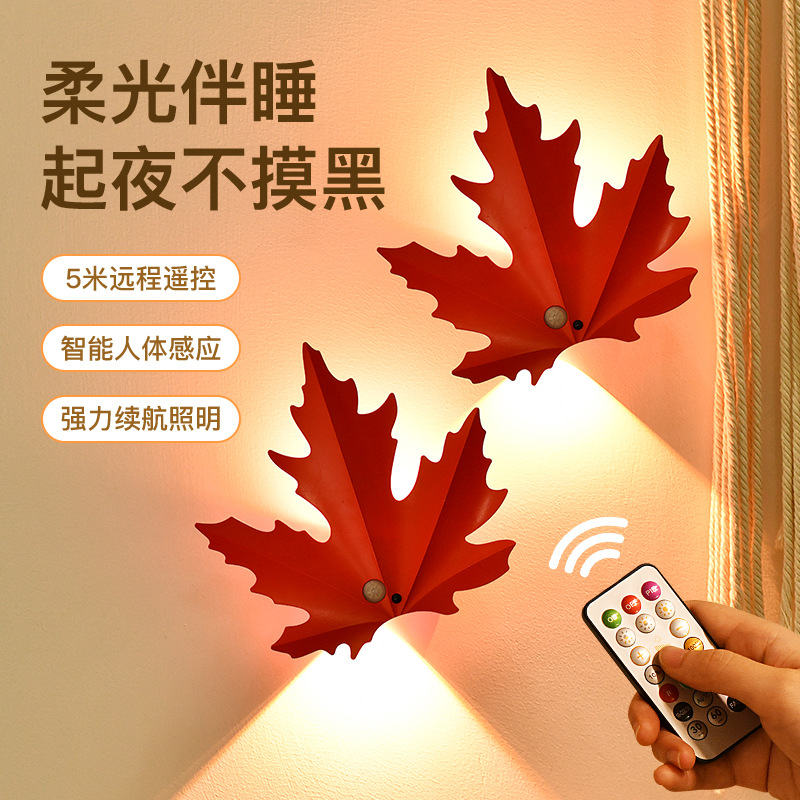 메이플 리프 지능형 충전식 배터리 유형 인체 유도 램프 자기 흡입 자체 접착 원격 제어 led 야간 조명 침실 물체 스포트라이트스토어 가기