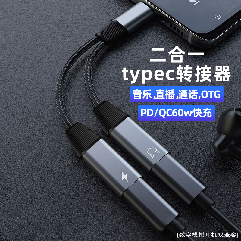 공장 유형-c 휴대 전화 어댑터는 화웨이 듀얼 헤드 60w 빠른 충전 DAC 디지털 오디오 어댑터에 적합합니다.