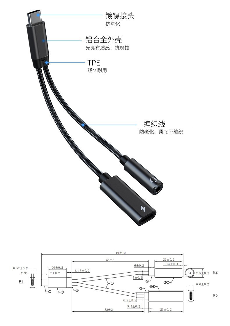 Type-c手机转接头 3.5mm耳机转接线 苹果转接线