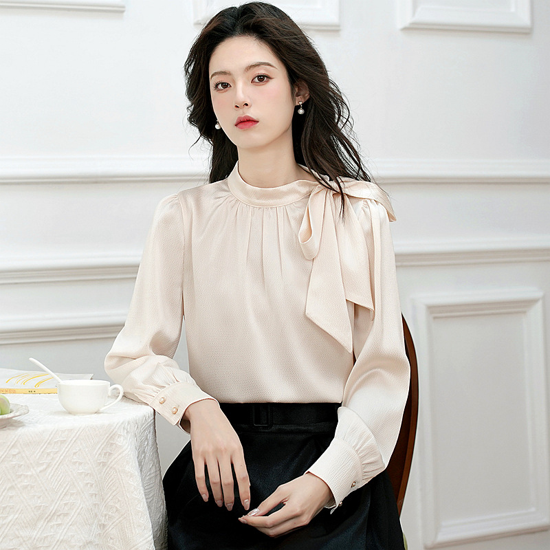 2025 년 이른 봄 새로운 한국 스타일 궁전 스타일 셔츠 쉬폰 우아한 긴 소매 셔츠 여자 톱 시즌 여자 셔츠스토어 가기