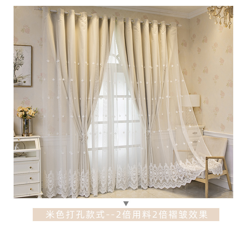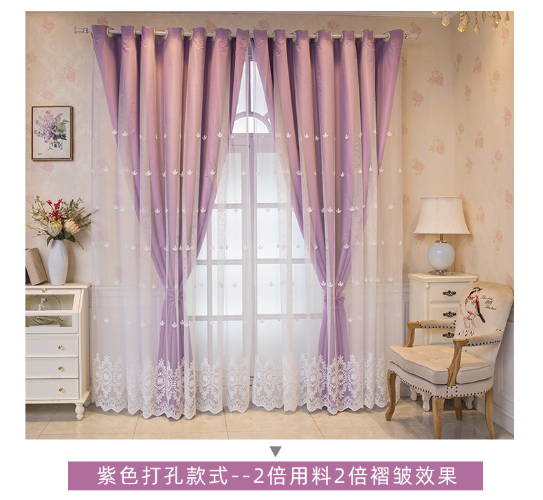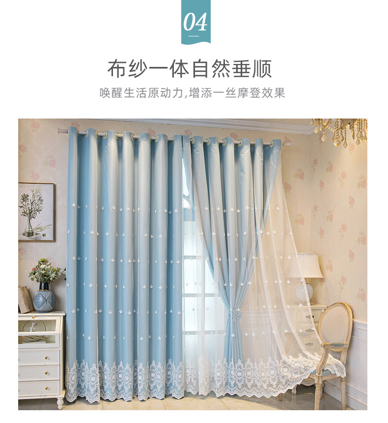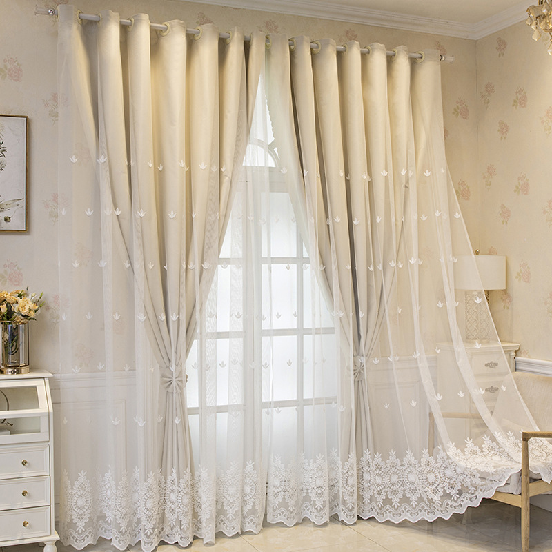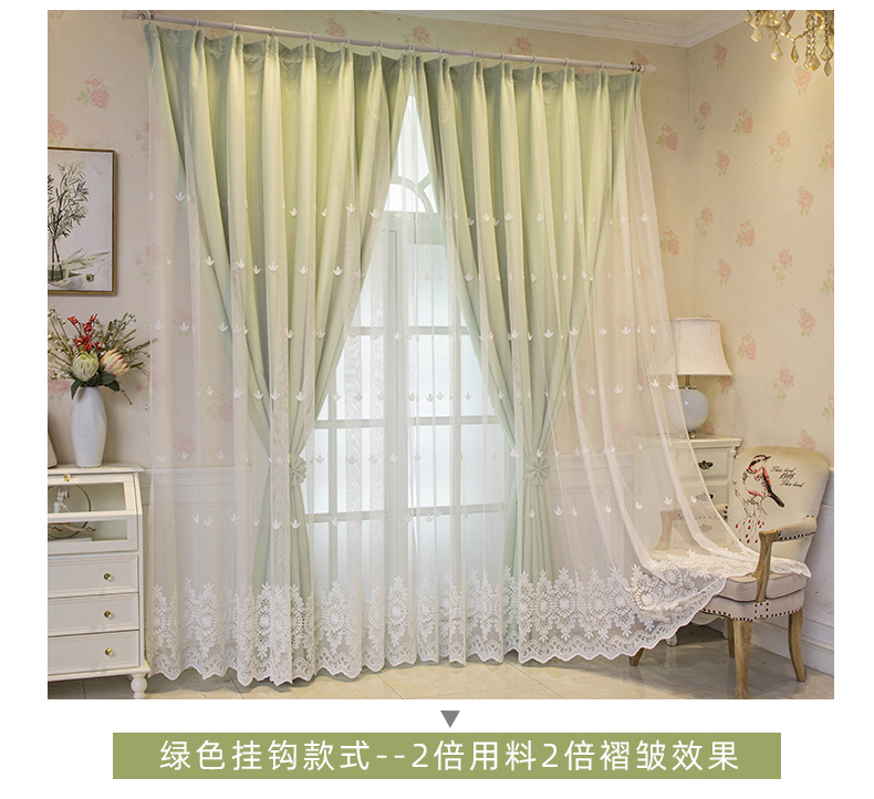 더블 레이어 천 및 원사 통합 블랙 아웃 커튼 침실 바닥부터 천장까지 창 간단한 현대 목가적 인 스타일 따뜻한 부동 창 단색 천