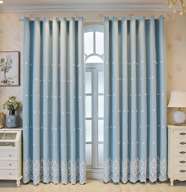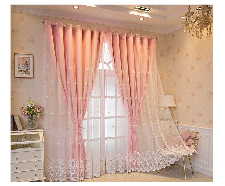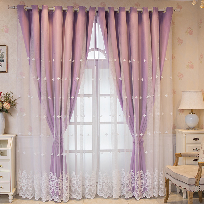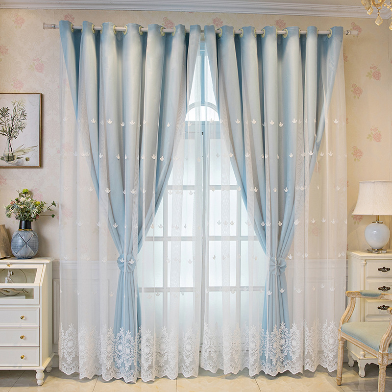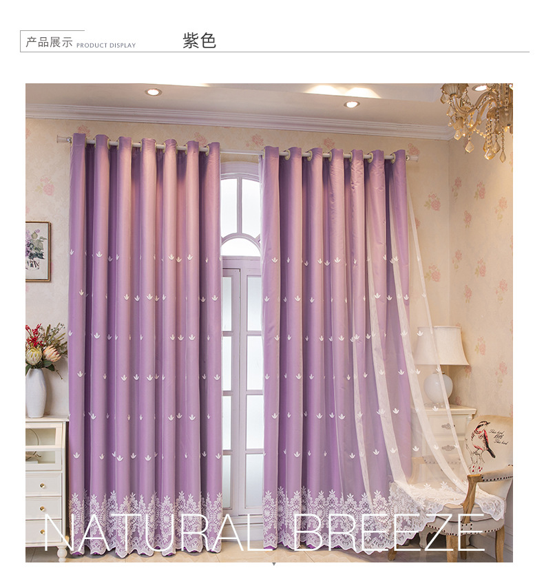 더블 레이어 천 및 원사 통합 블랙 아웃 커튼 침실 바닥부터 천장까지 창 간단한 현대 목가적 인 스타일 따뜻한 부동 창 단색 천