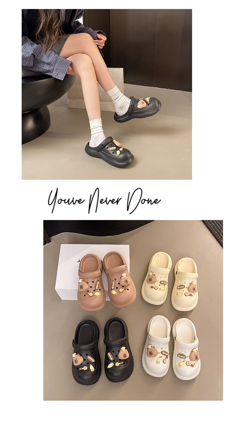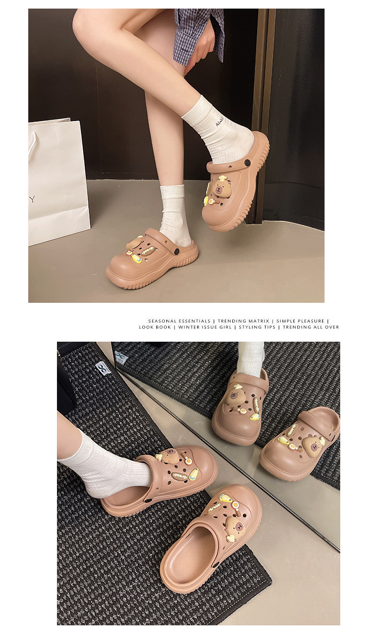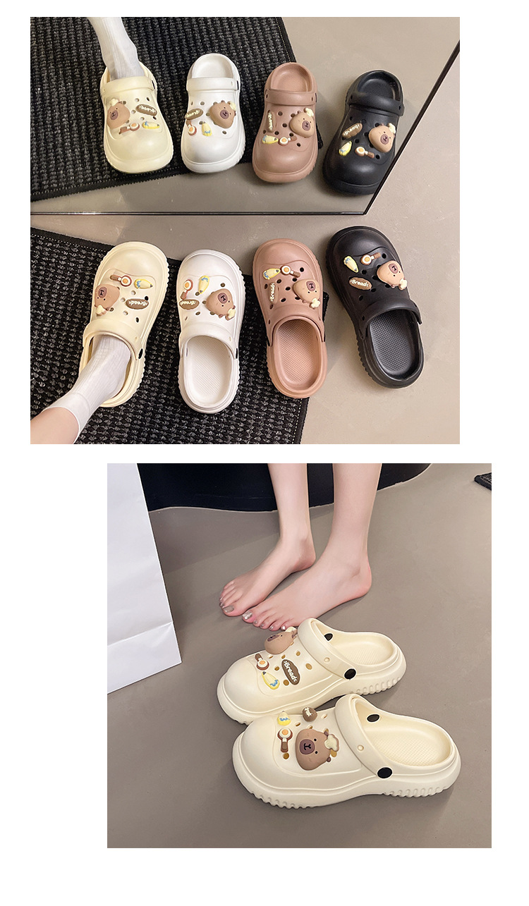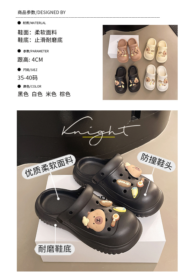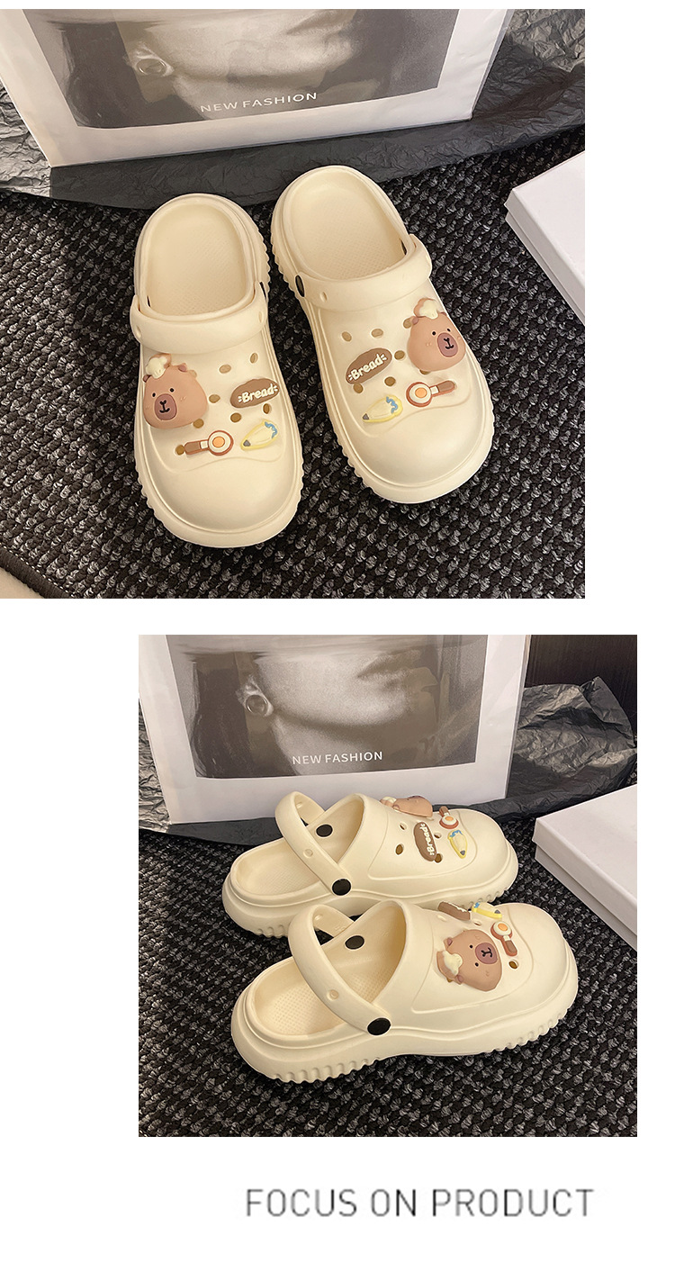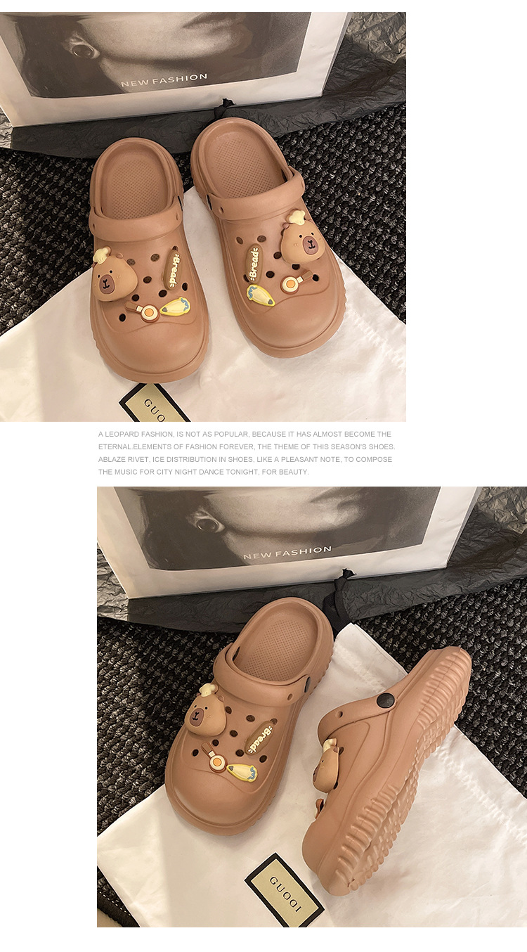 에바 플랫폼 구멍 신발 여성의 2025 새로운 여름 겉옷 귀여운 만화 복어 물고기 해변 바오터 드래그
