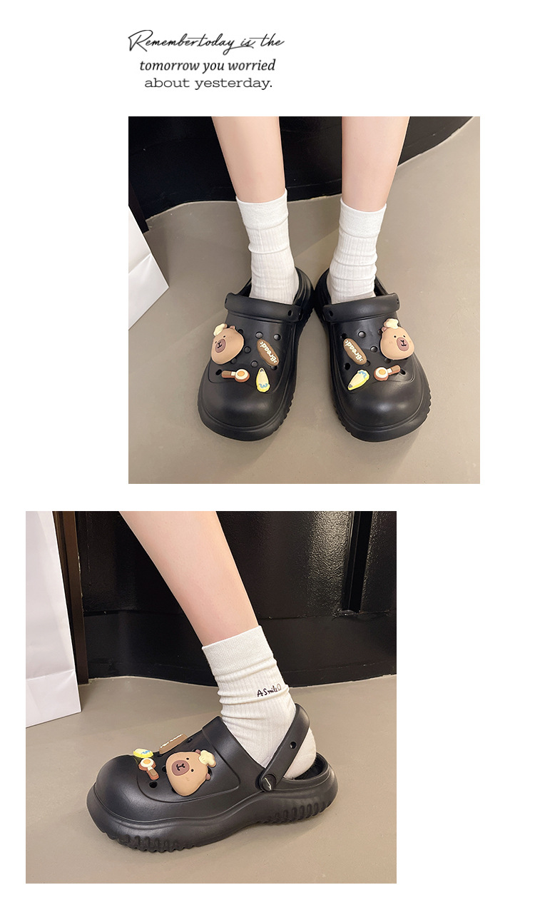 에바 플랫폼 구멍 신발 여성의 2025 새로운 여름 겉옷 귀여운 만화 복어 물고기 해변 바오터 드래그스토어 가기