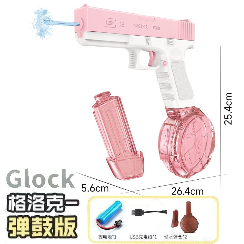 • 충전식 버전 [글록] 핑크 - 매거진 스타일 + 드럼 매거진