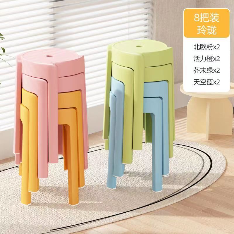 가정용 의자 두꺼운 플라스틱 쌓을 수있는 테이블 벤치 풍차 의자 높은 둥근 의자 고무 의자 간단한 의자