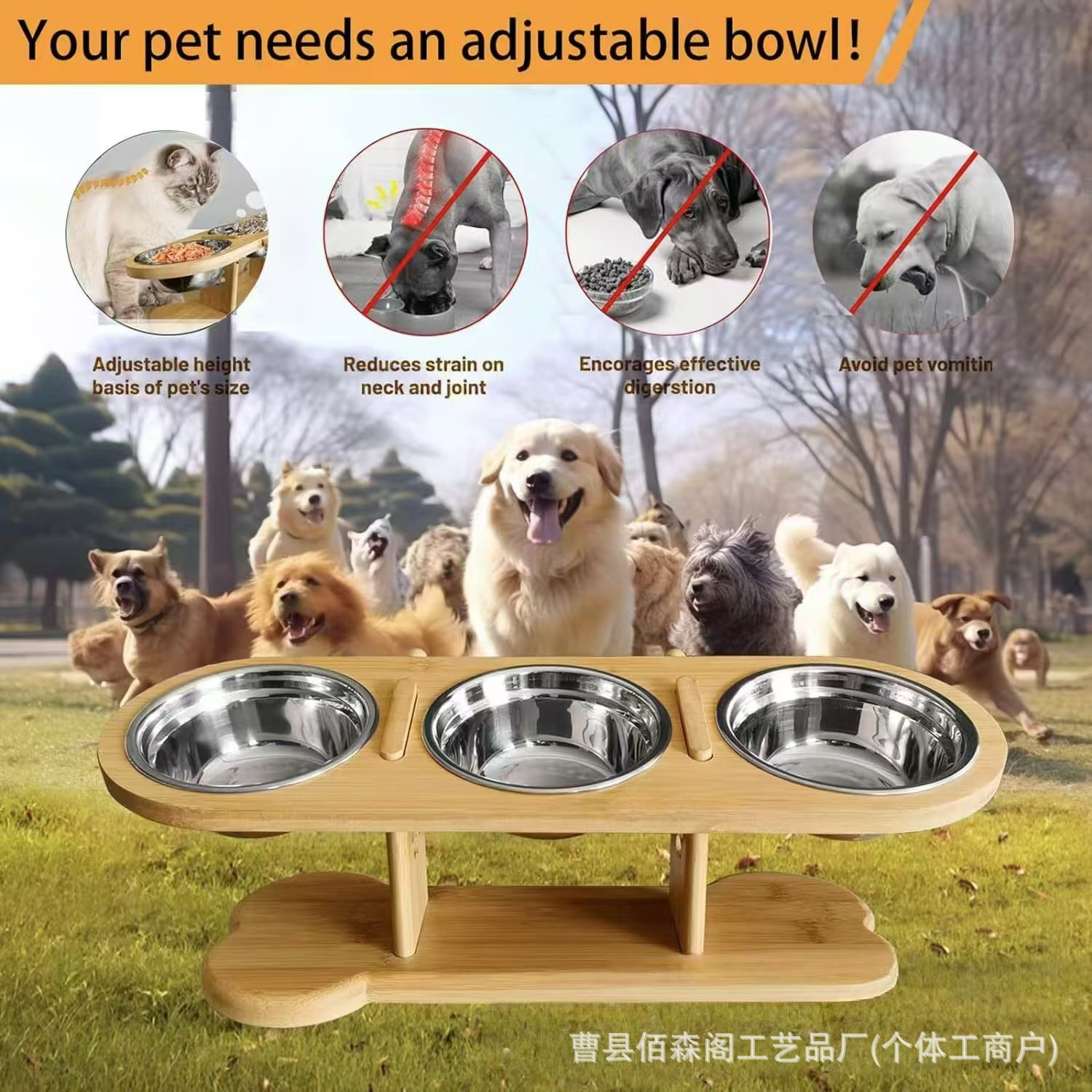 대나무 애완동물 용품 피더, 탈착식 고양이 사료 및 물 그릇, 먹이대, 목을 보호하는 목재 강화 개 그릇 선반스토어 가기