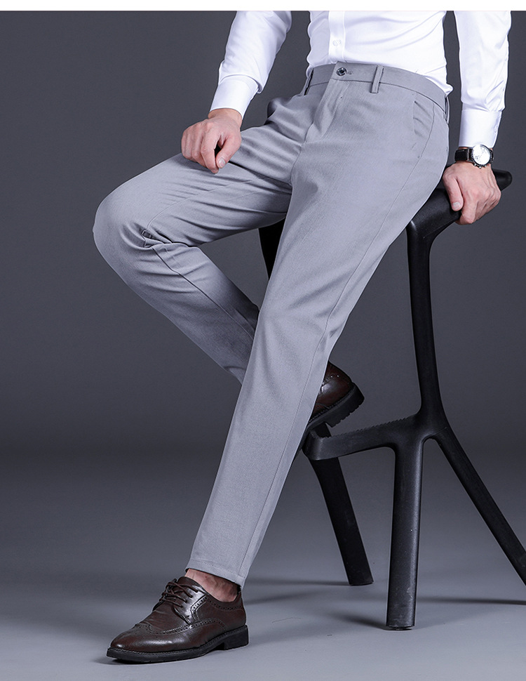 남성 바지 캐주얼 바지 2025 새로운 비즈니스 트렌디 바지 패션 슬림 핏 스트레치 스트레이트 바지 청소년 인기 긴 바지