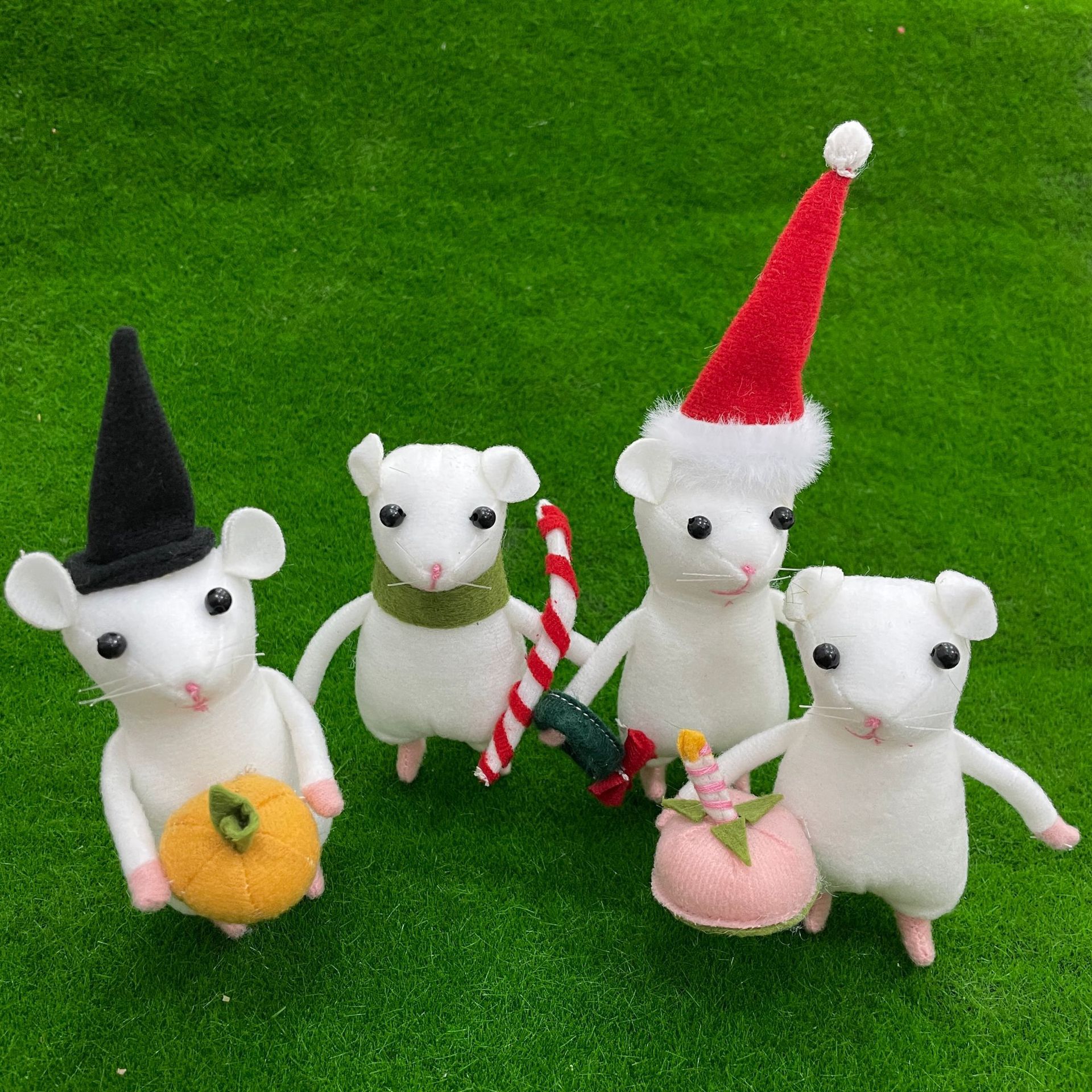 국경 간 새로운 창조적 인 봉제 미니 화이트 마우스 헝겊 인형 어린이 크리스마스 할로윈 선물