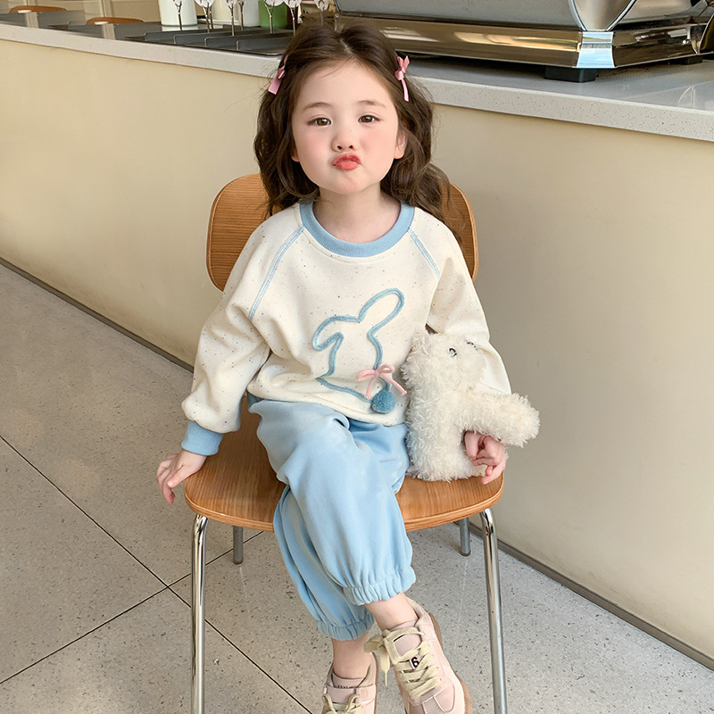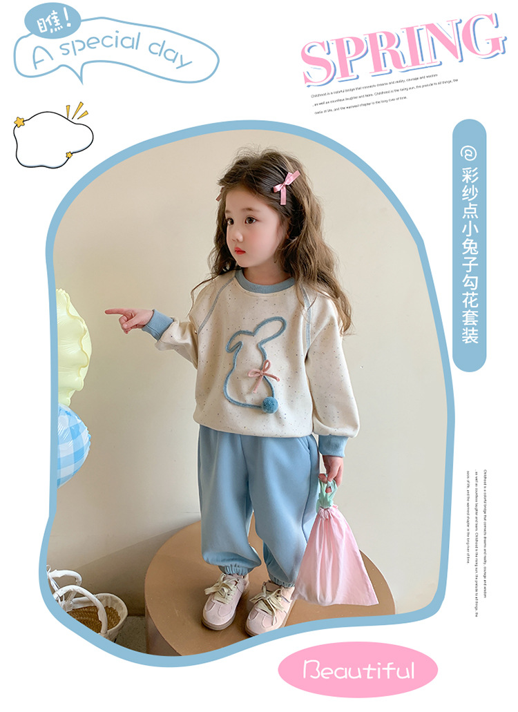 소녀 컬러 원사 포인트 토끼 크로 셰 세트 봄과 가을 2025 새로운 패션 소녀 스웨터 투피스 세트스토어 가기