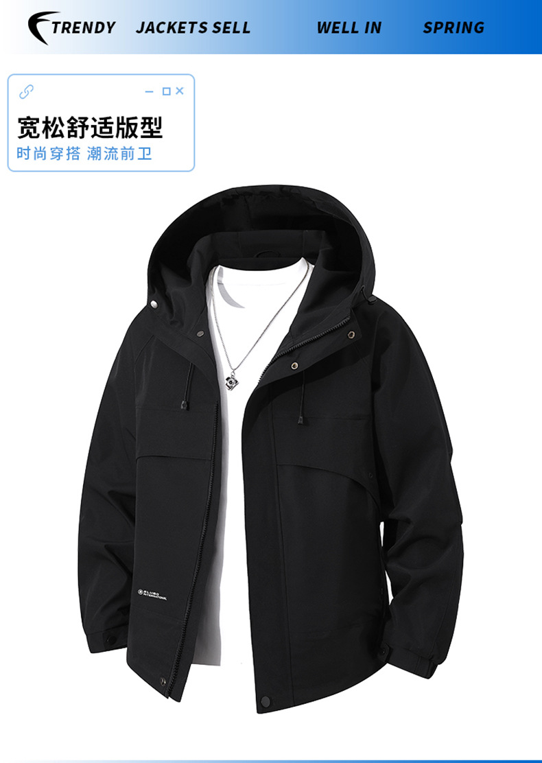 2025 봄과 가을 코트 프록 봄 새로운 남성 루즈 트렌디 브랜드 후드 재킷 캐주얼 방풍 올매치 얇은스토어 가기
