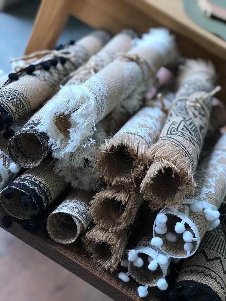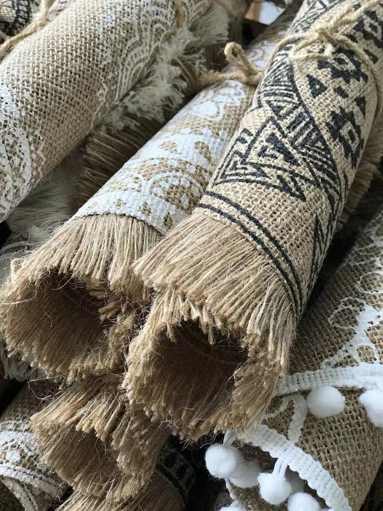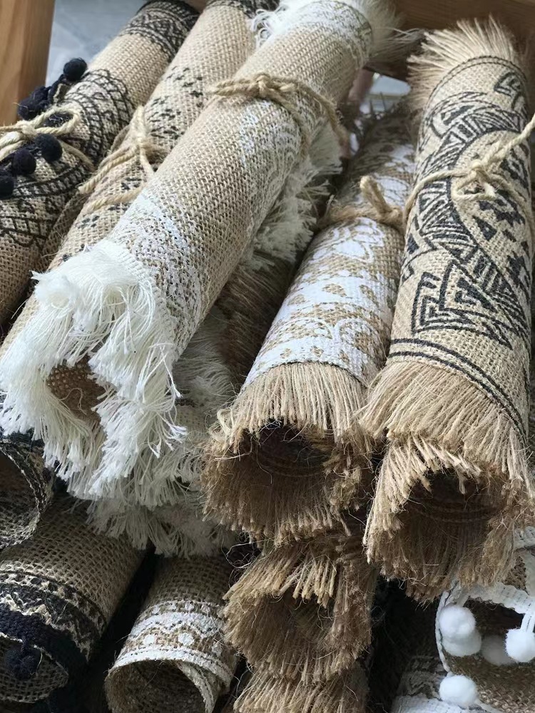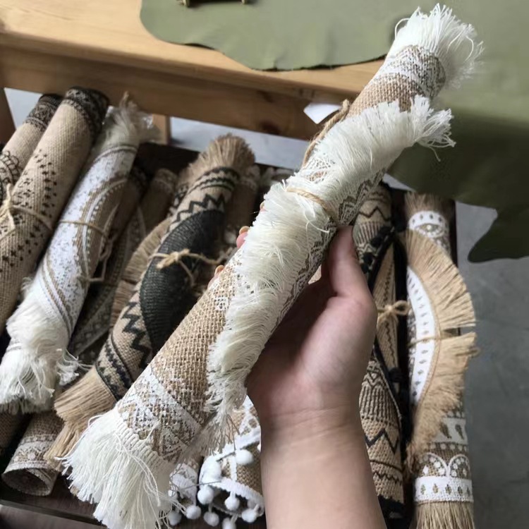 C ^ 보헤미안 복고풍 테이블 매트! Ins 스타일 손으로 짠 황마 플레이스 매트 직경 유럽식 혼합 식탁보스토어 가기