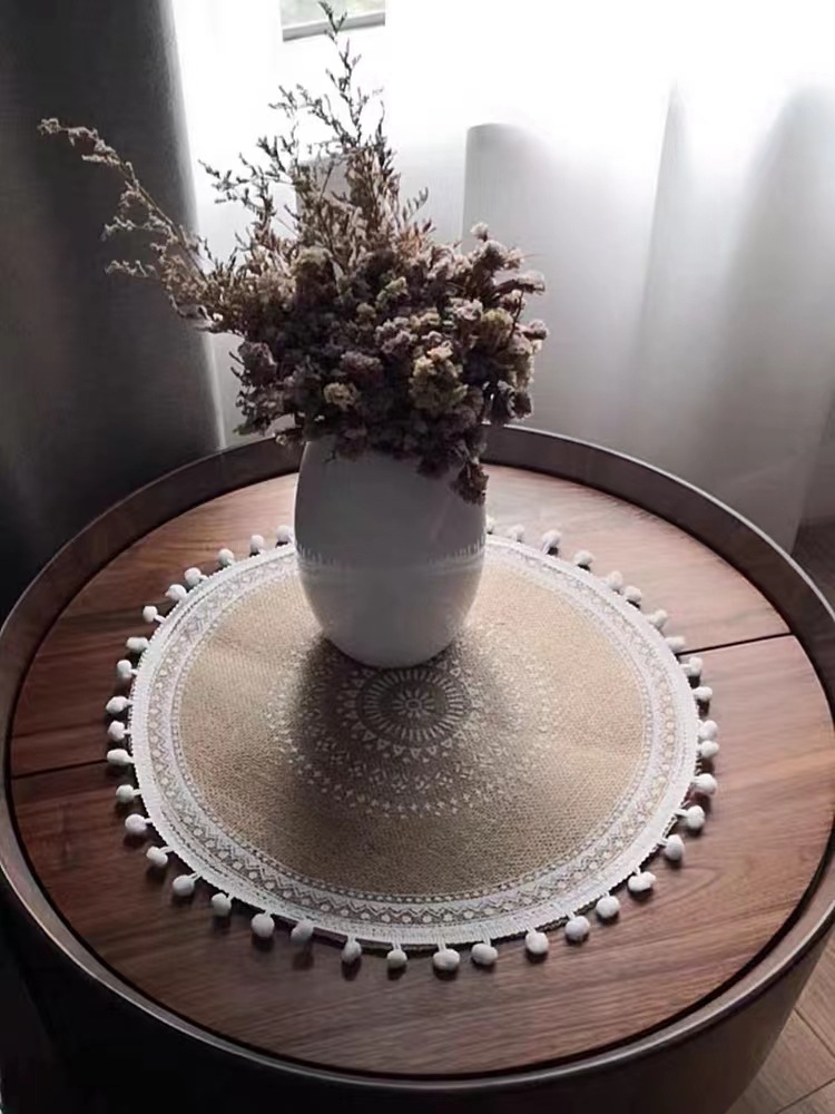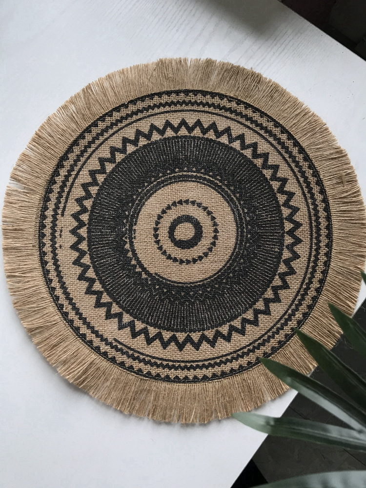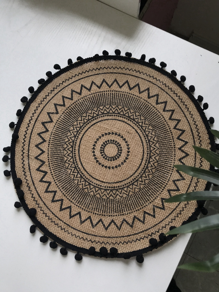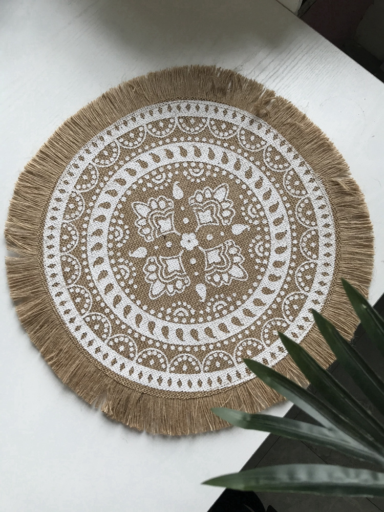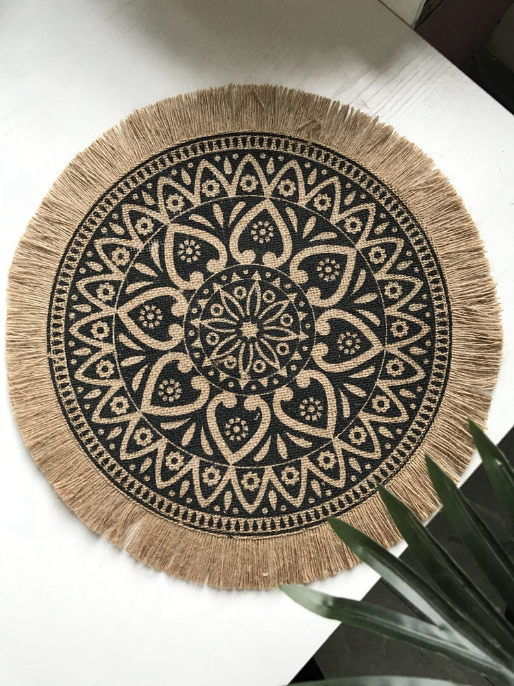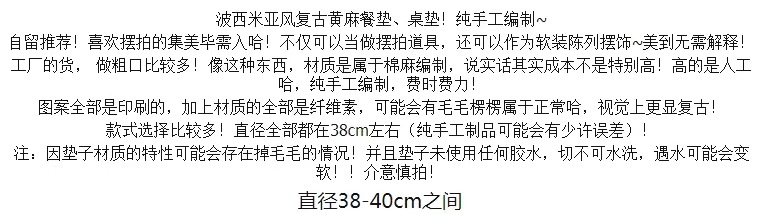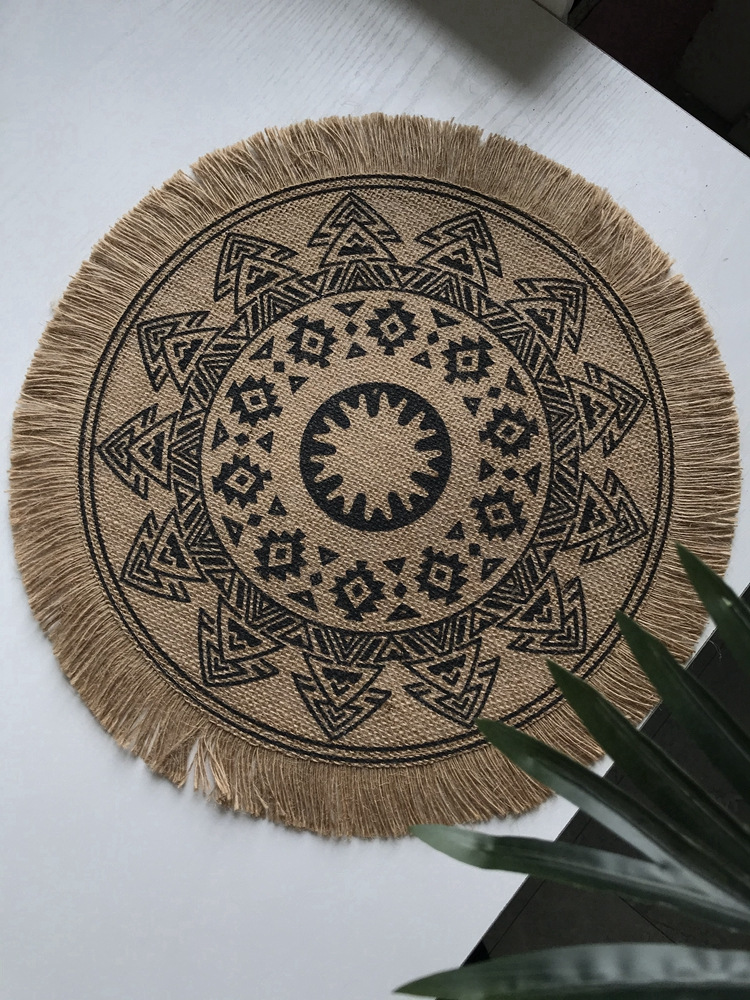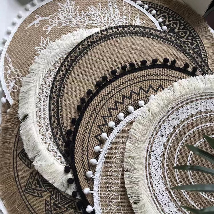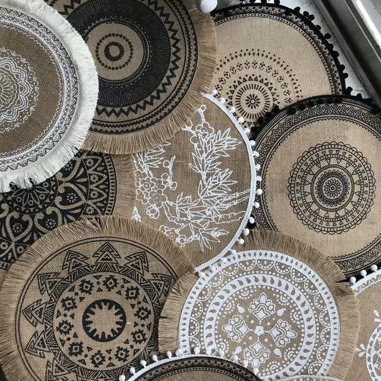 C ^ 보헤미안 복고풍 테이블 매트! Ins 스타일 손으로 짠 황마 플레이스 매트 직경 유럽식 혼합 식탁보