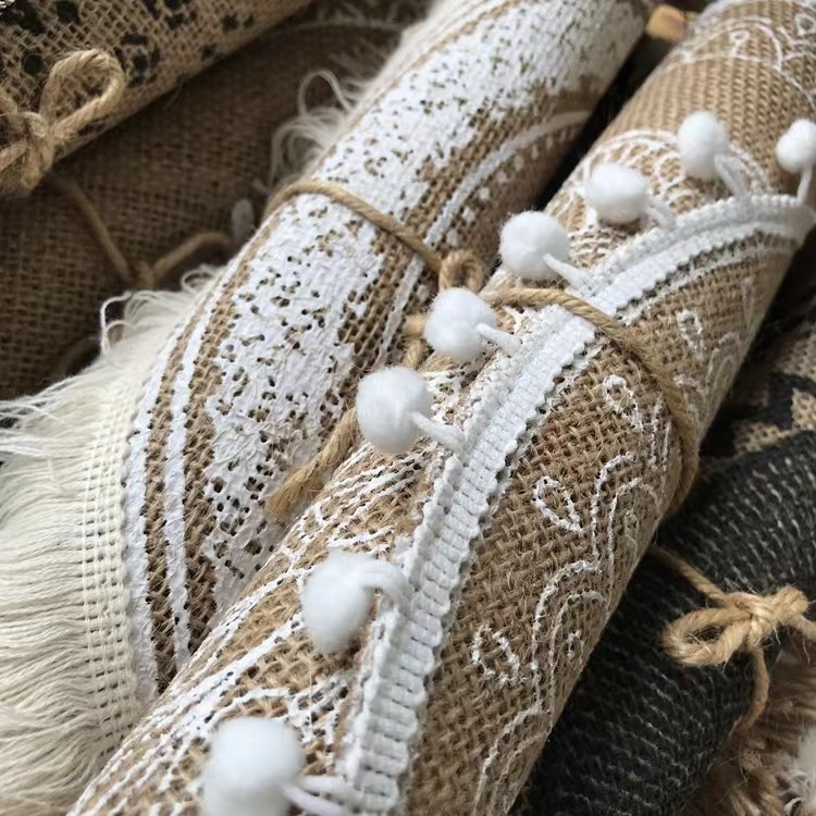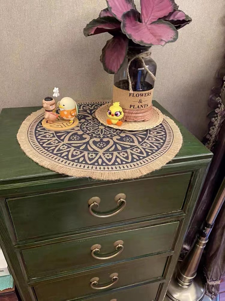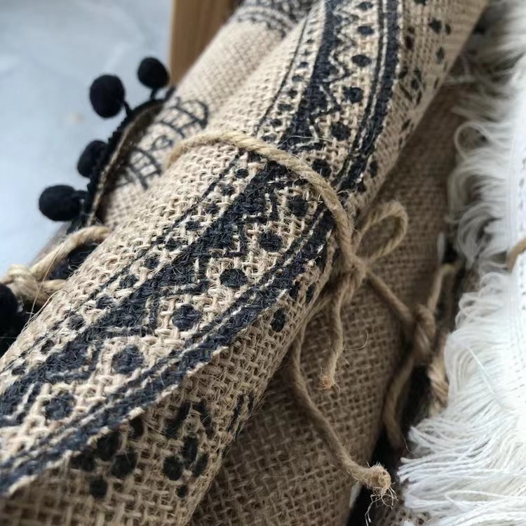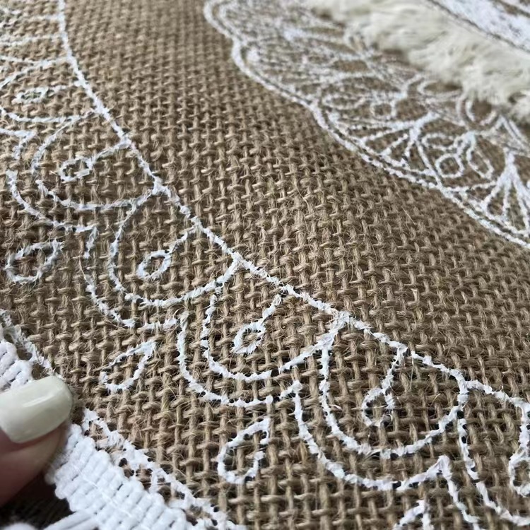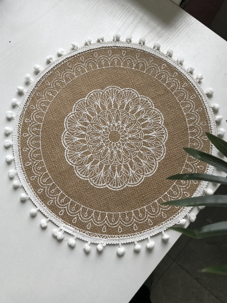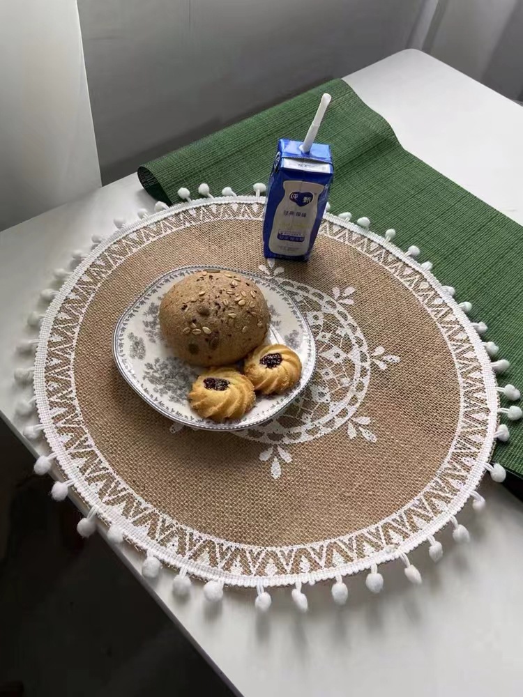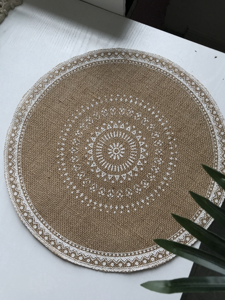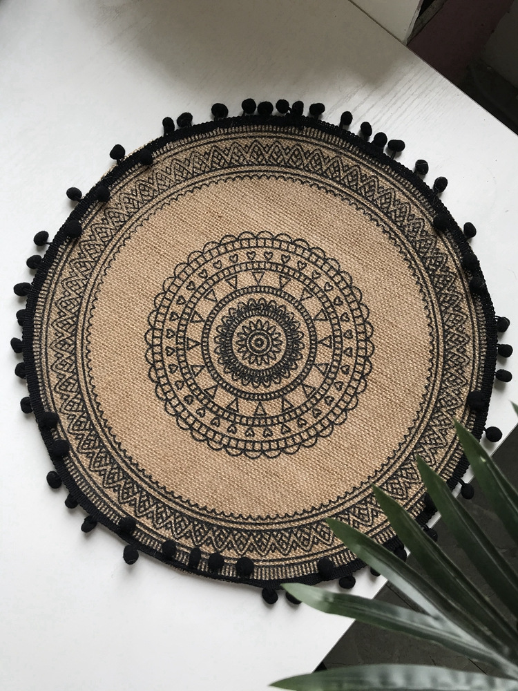 C ^ 보헤미안 복고풍 테이블 매트! Ins 스타일 손으로 짠 황마 플레이스 매트 직경 유럽식 혼합 식탁보